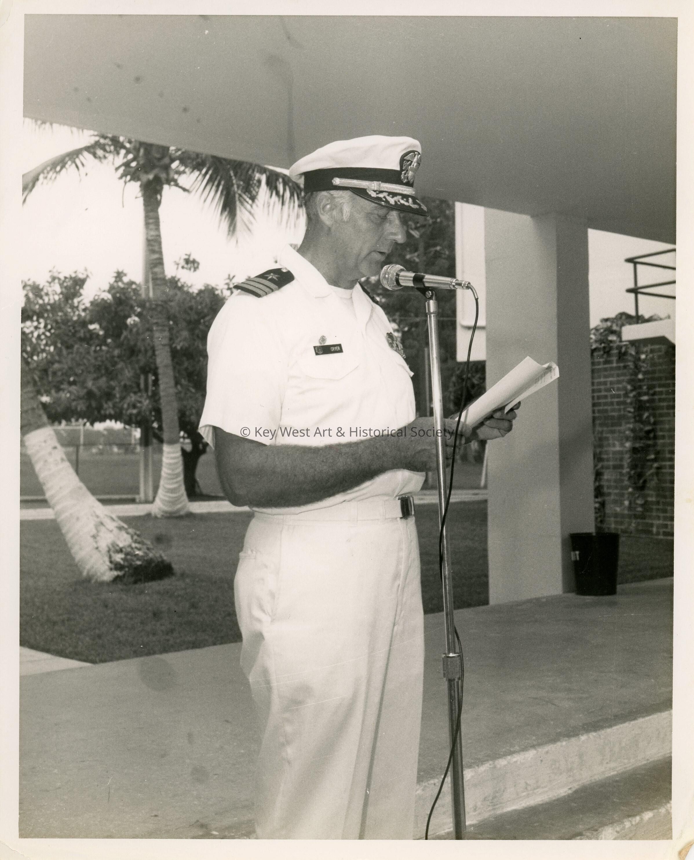 U.S. Navy John Cryer reading at the microphone