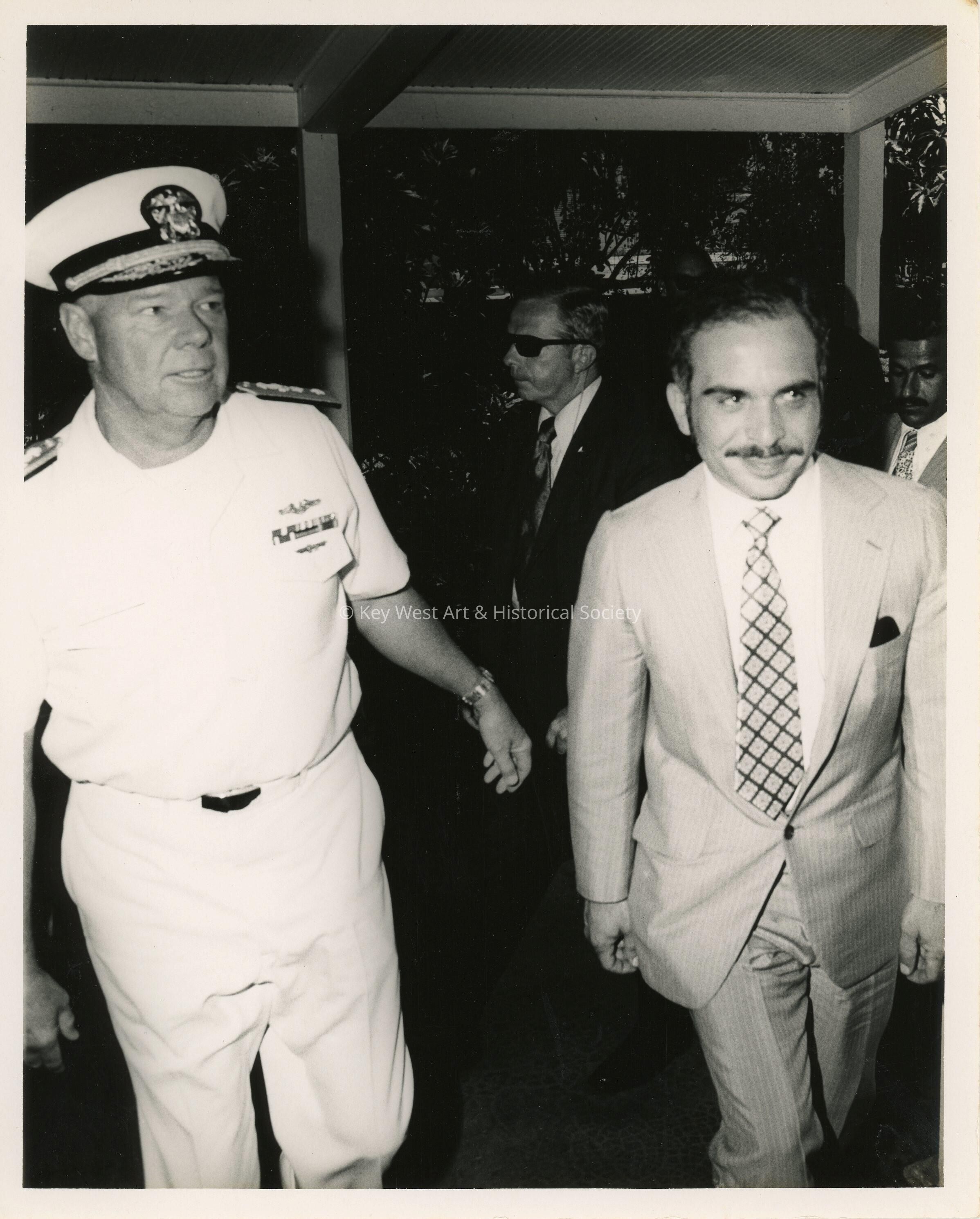 U.S. Navy man walking with unknown man