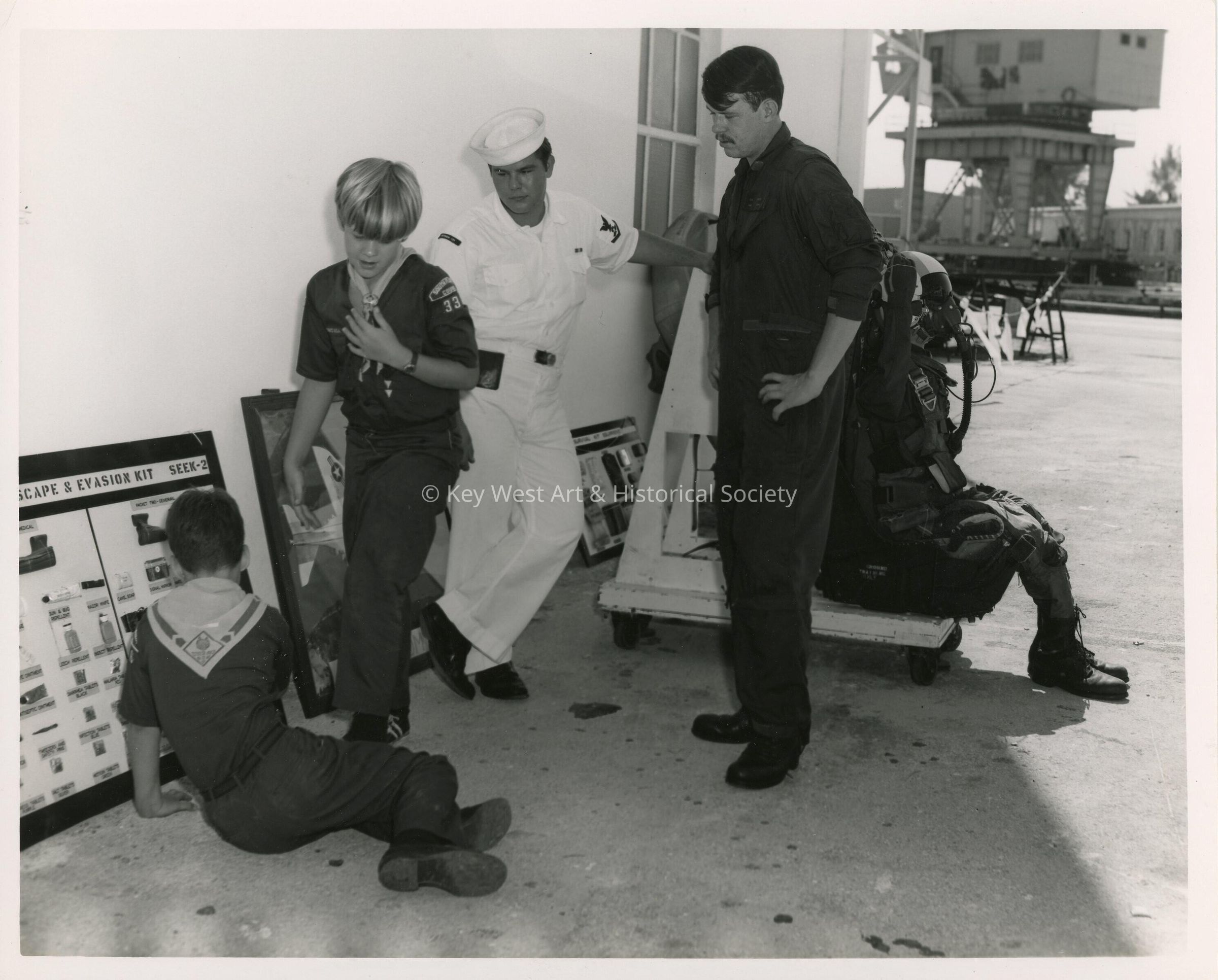 U.S. Navy men with boy scouts