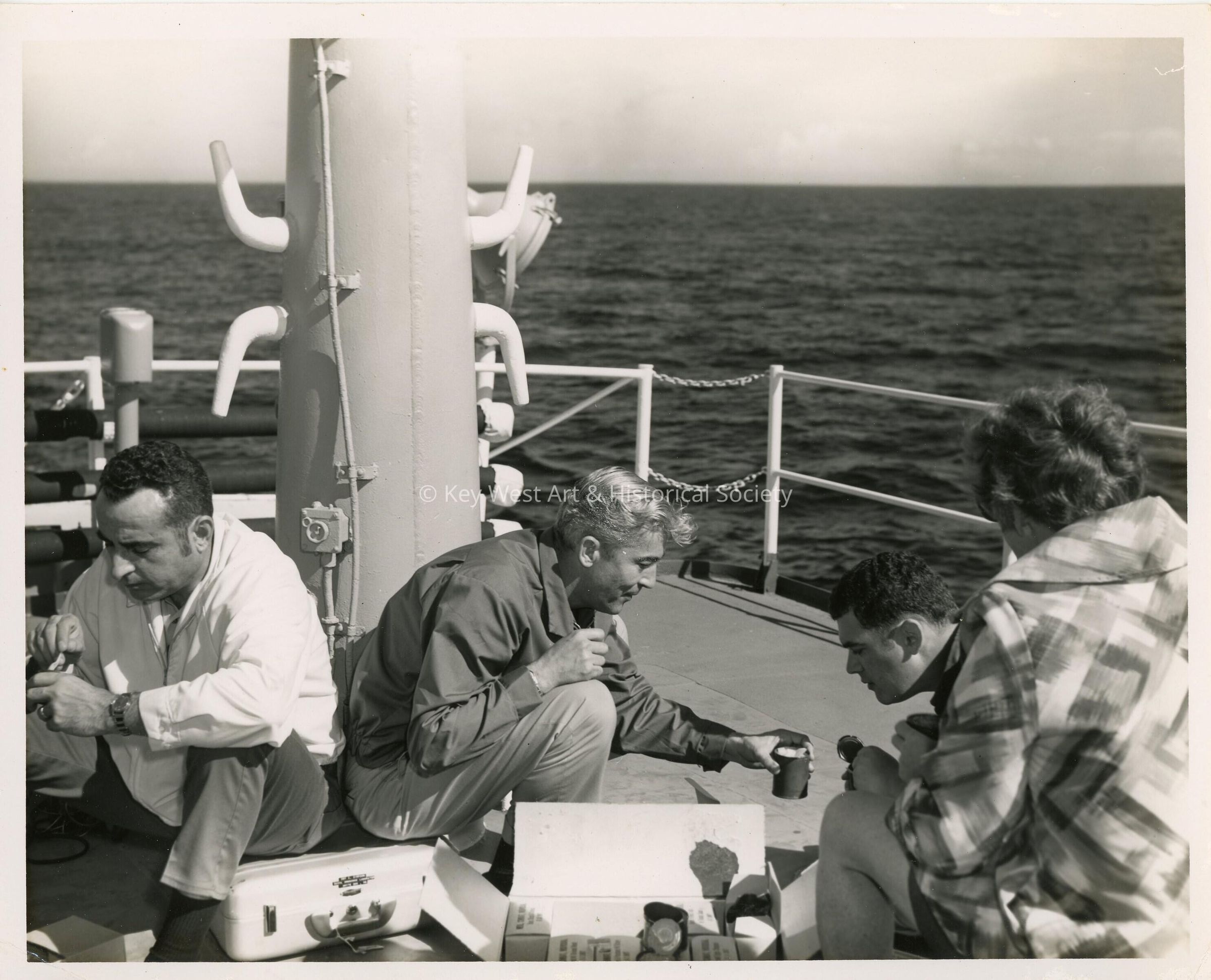 U.S. Navy ship with unknown people eating