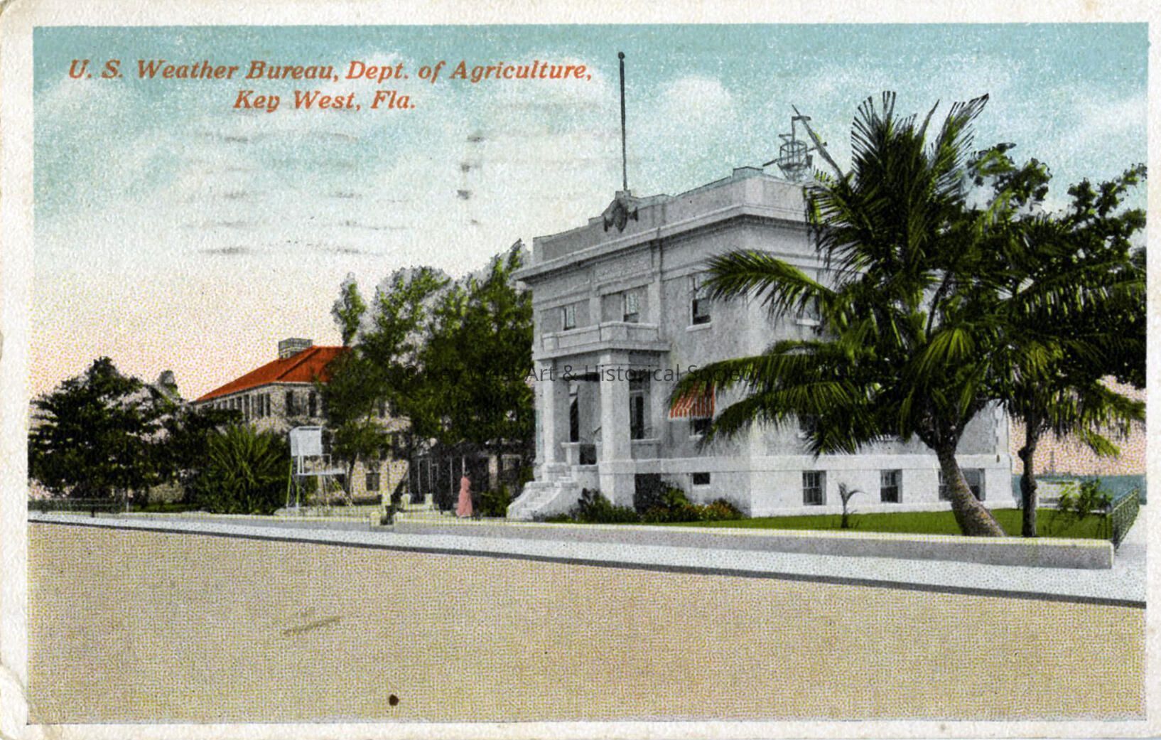 Postcard depicting the Weatherstation building at 57 Front Street. Caption reads, ‘U.S. Weather Bureau Dept. of Agriculture, Key West, Fla.'Subject Place