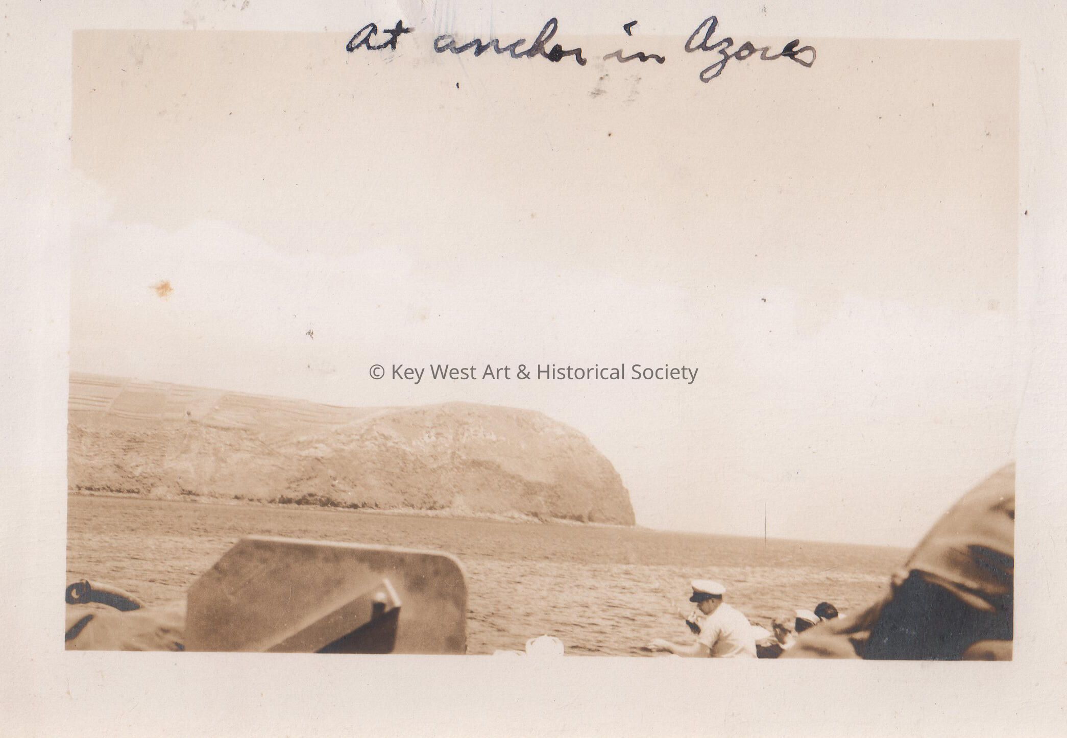 From the U.S.S. Key West (PF-17) in World War II; view of Azores.
