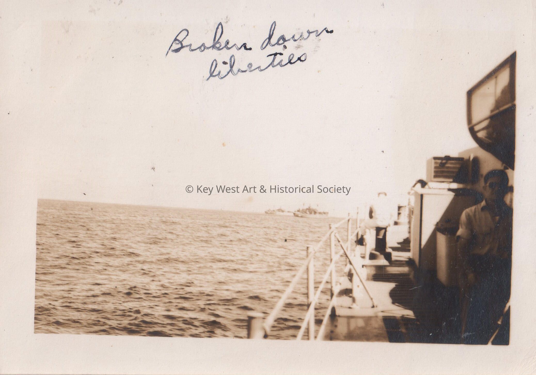 From the U.S.S. Key West (PF-17) in World War II; view from ship (Broken down Liberties).Collection