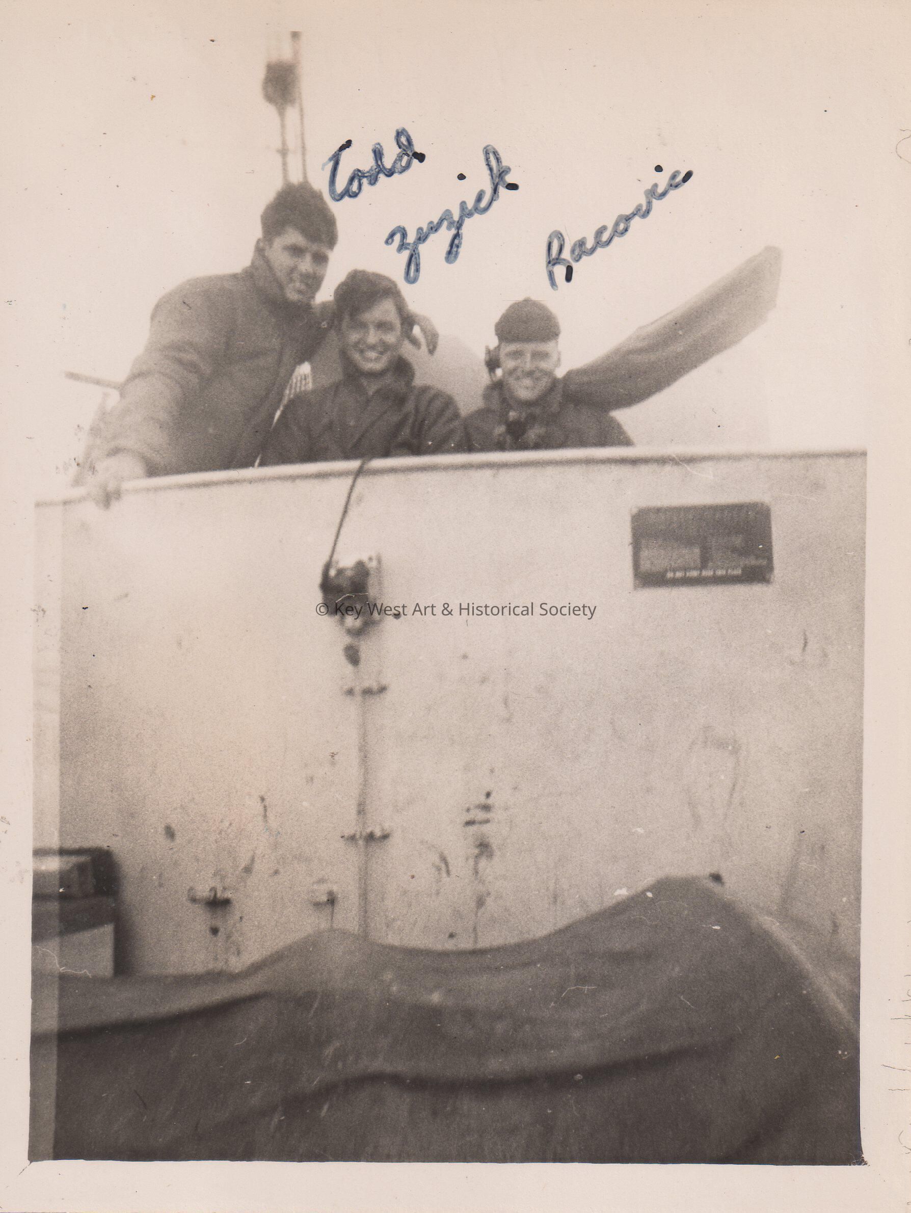 From the U.S.S. Key West (PF-17) in World War II; left to right are Todd, Zuzick, and Racovic.Collection