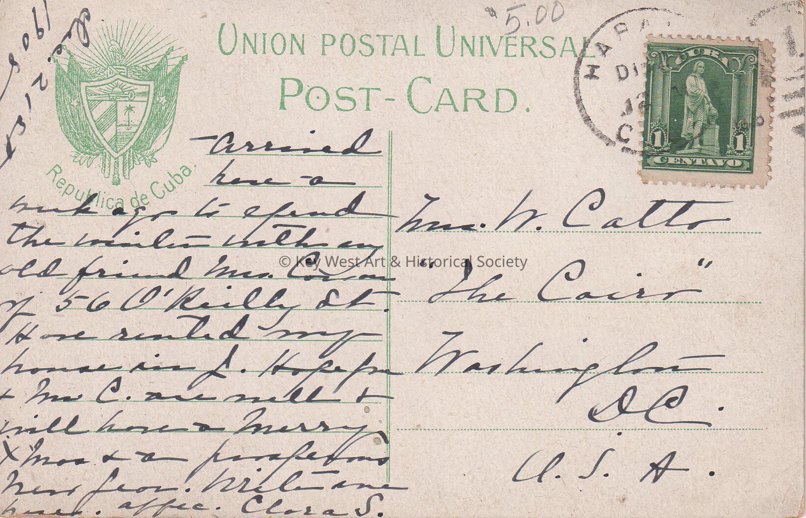 Arrived here a week ago to spend the winter with my old friend Mrs. C___ of 56 O’Reilly Street. Have rented my house in __. Hope you and Mrs. C. are well & will have a Merry Xmas & a prosperous New Year. Write one here. Affectionately, Clara S.Language
