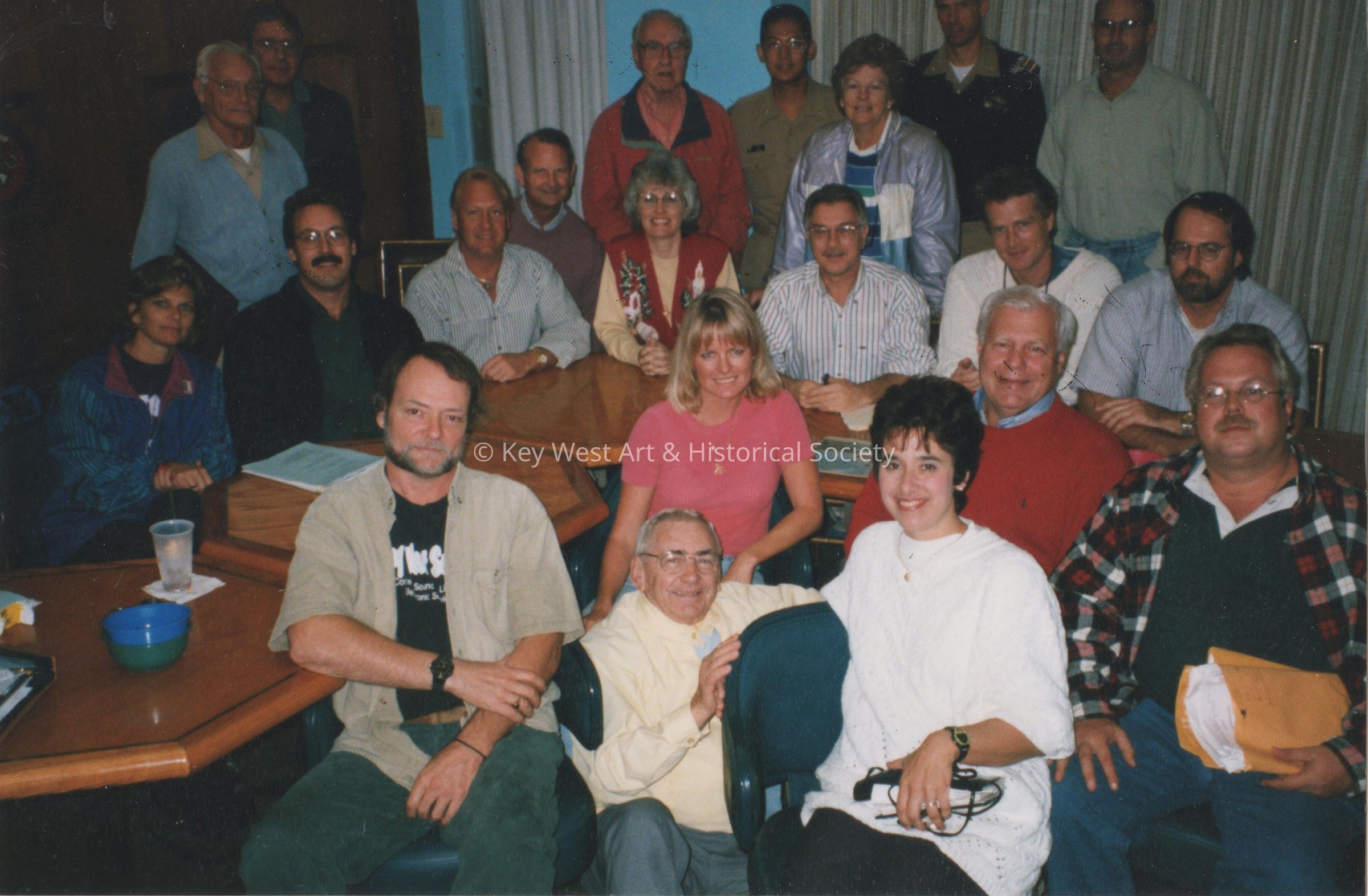 U.S.S. MAINE Centennial Celebration Commission members, in February of 1998. Left to right, back row - Phil Carney, Nick Gee, Ed Block, Lt. Min (USN), and Kitty Clements. Middle row Lisa Wheeler, Ed Tausche, Ken Wells, Tom Clements, Sandy Higgs, Joe Pais, Kevin O'Brien, and Ron Demes. Front row Brent, Evalena Worthington, Bob Elliott, Ed Spehar, and Mark Rossi.Collection