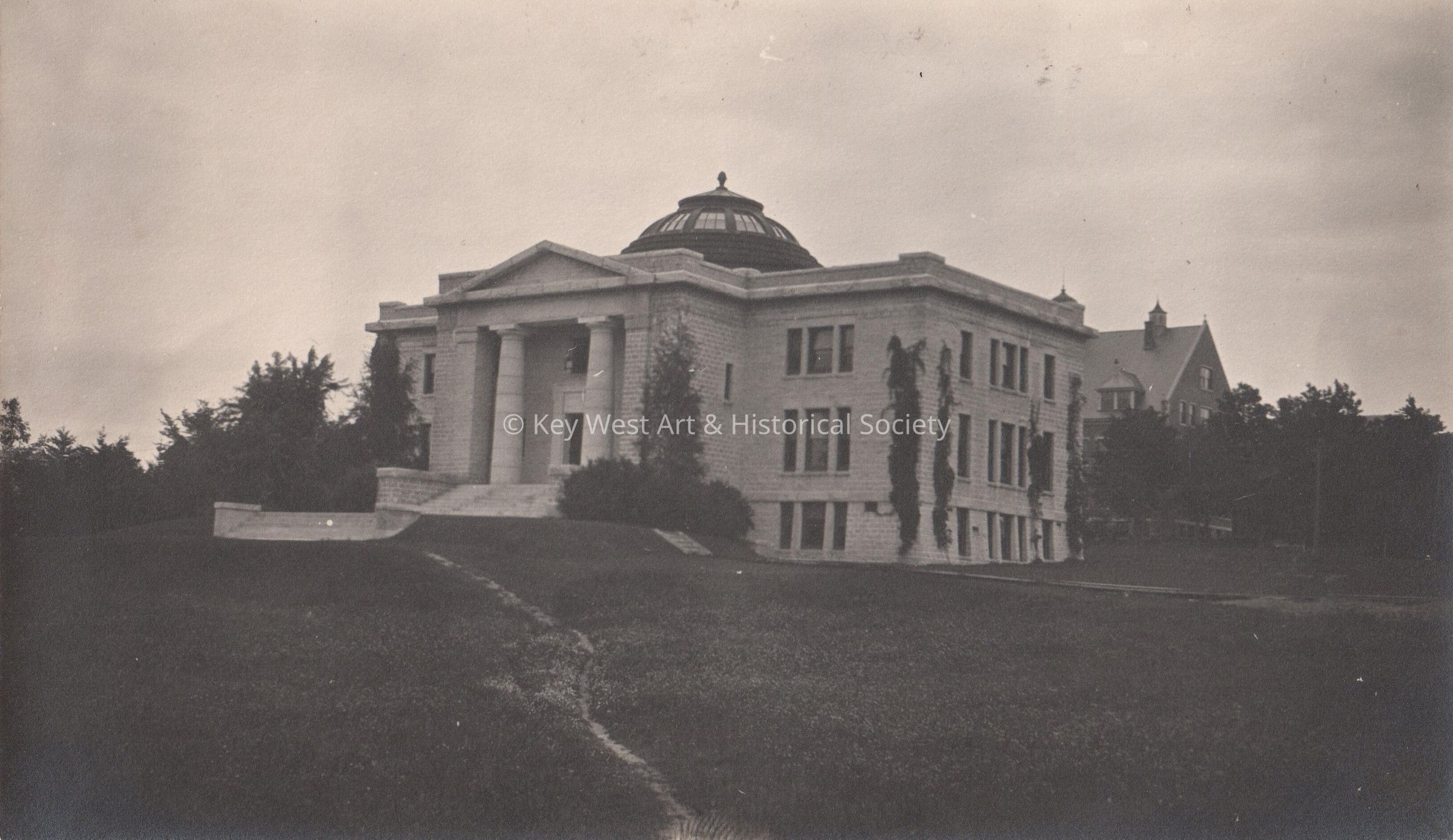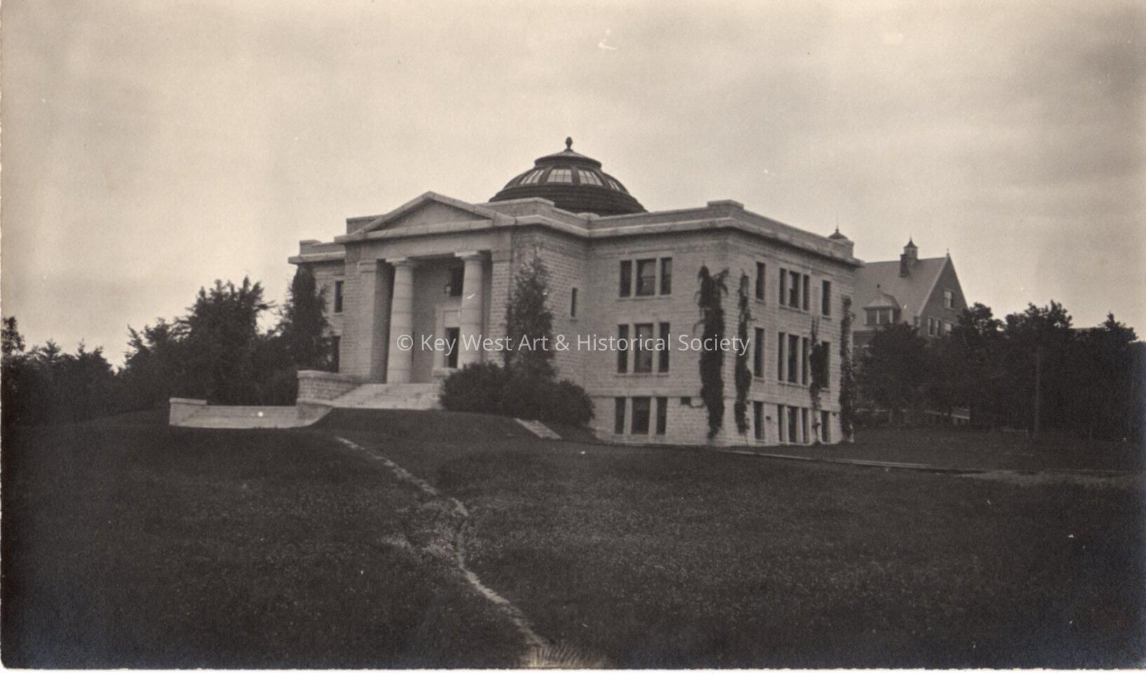 Black and white photograph of an unknown Neoclassical style building with a central rotunda.Collection