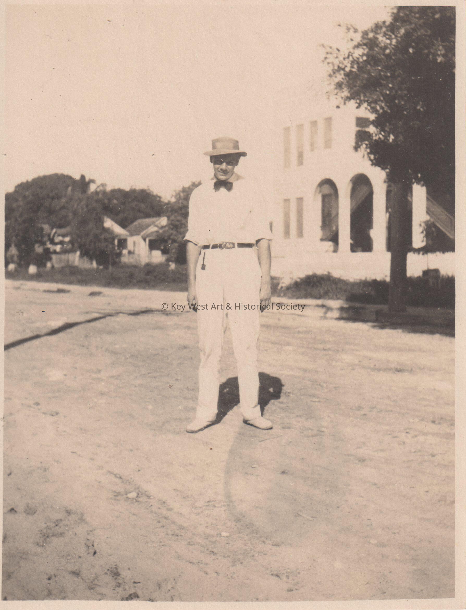 Black and white photograph of an unknown Cuban man with a light colored outfit, bowtie, and rolled up sleeves.Collection