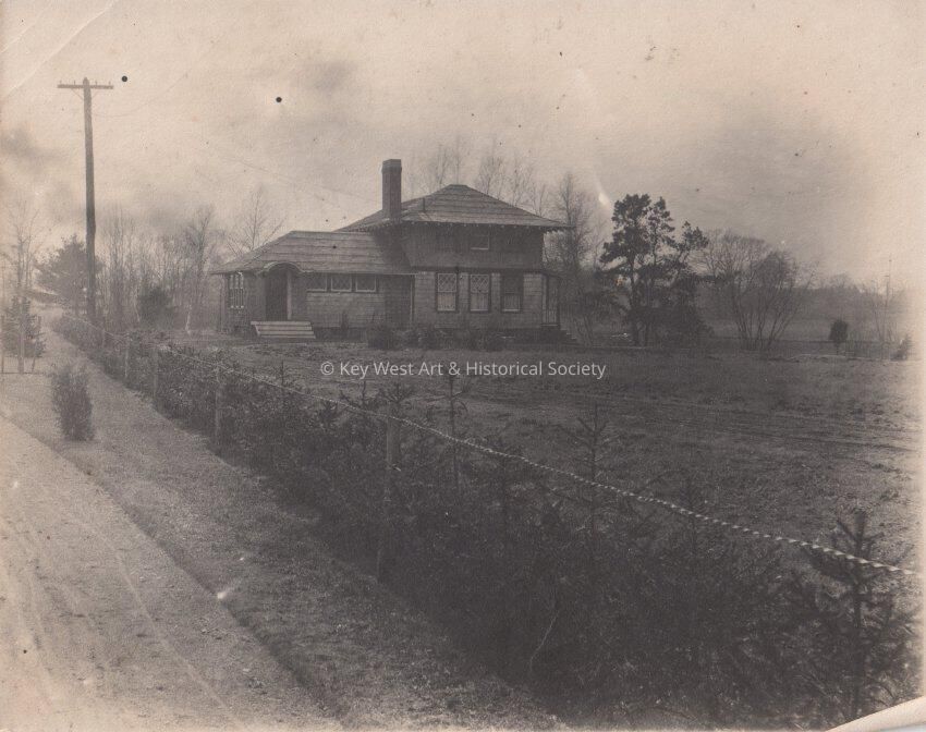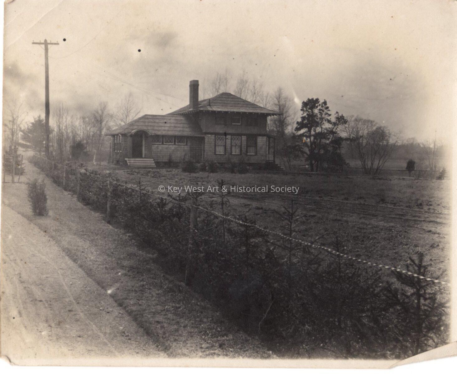 Black and white photograph of an unknown house with a large yard. Photograph taken for the Blackstone Gas and Electric Company.