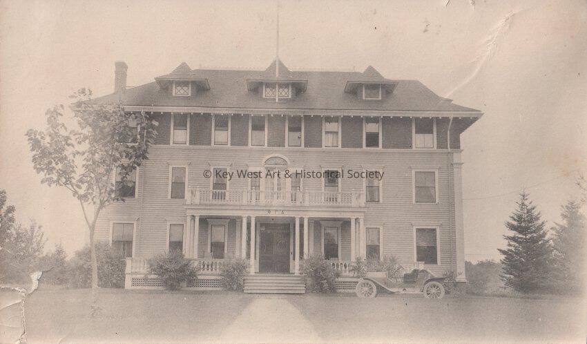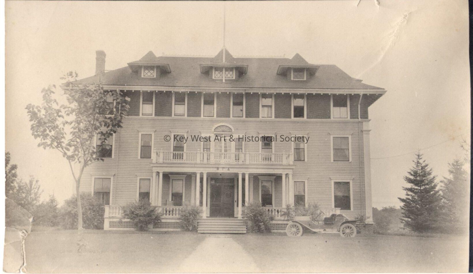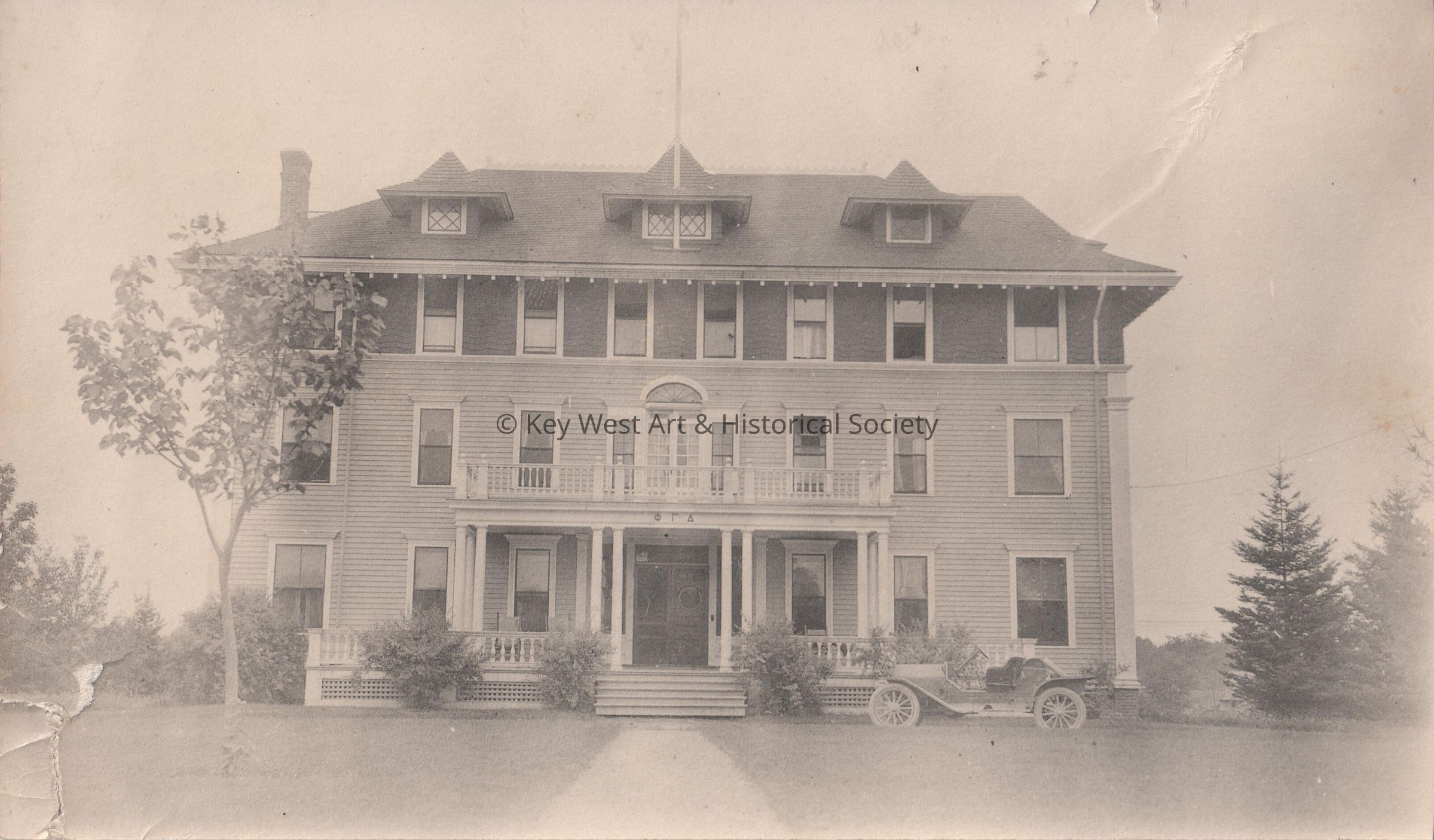 Black and white photograph of an unknown three story house and car. Photograph taken for the Blackstone Gas and Electric Company.Collection