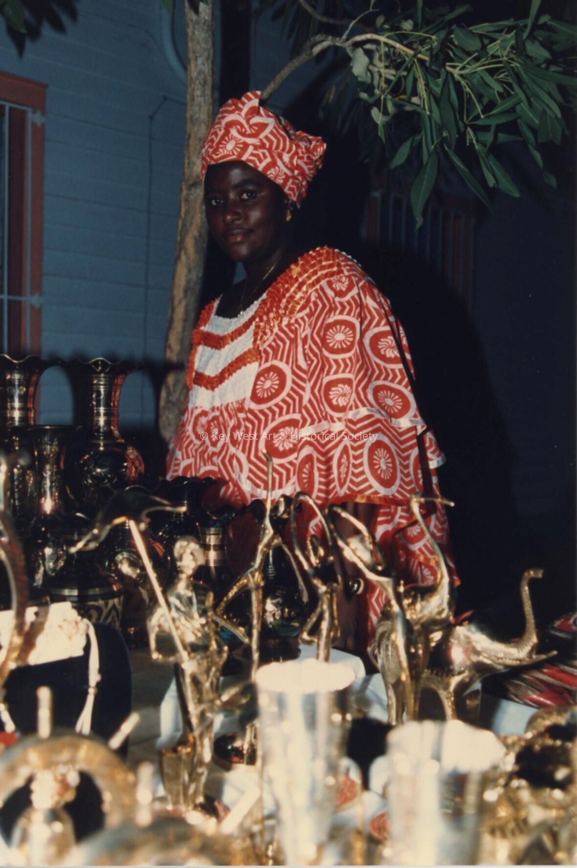 Unknown lady selling items at a Goombay booth.Entry/Object ID