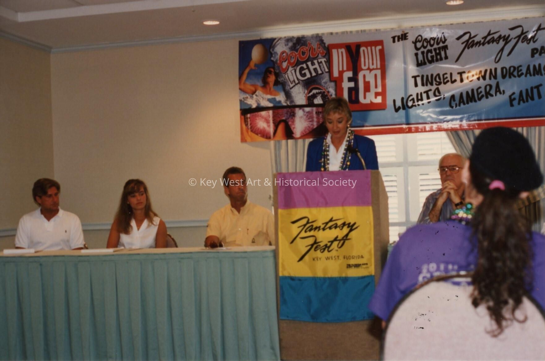 Unknown lady talking at the Fantasy Fest meeting.Entry/Object ID