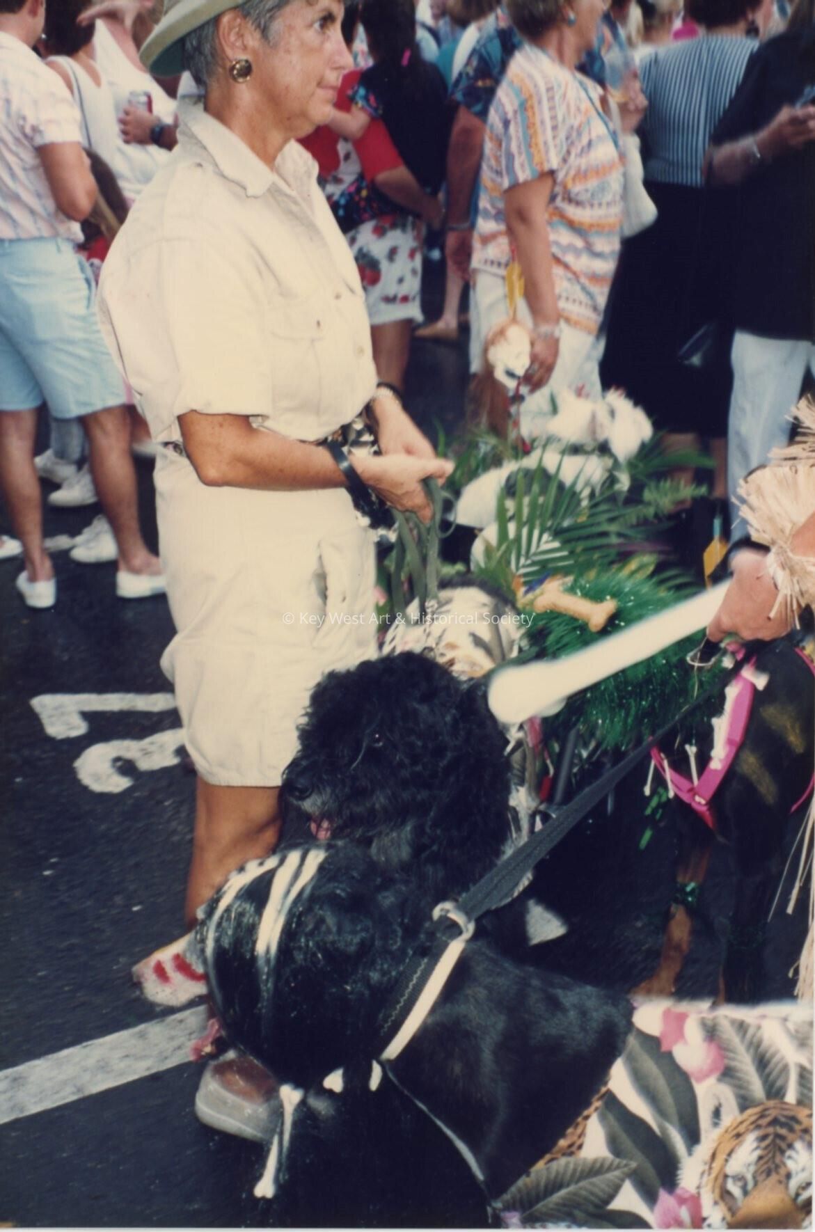 Unknown lady walking 2 dogs.