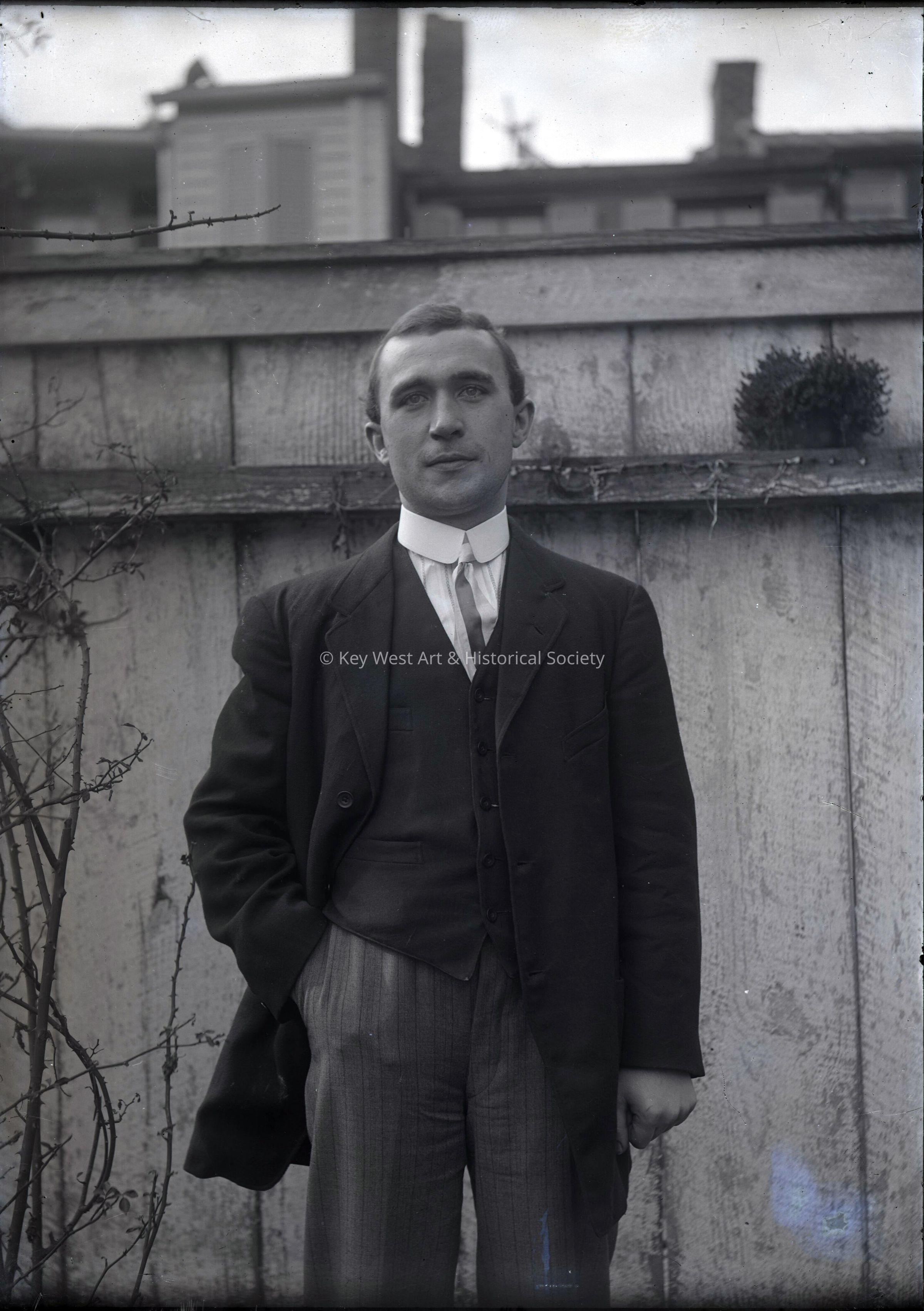 Black and white dry plate glass negative of an unknown man.