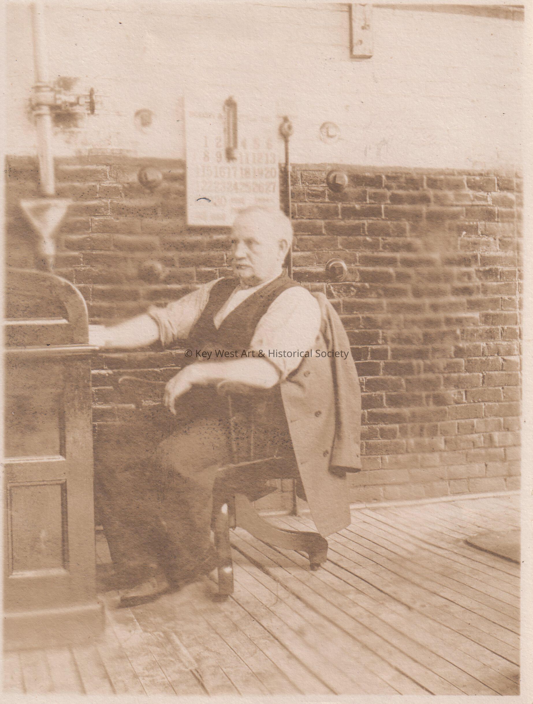 Black and white photo of a man sitting at a desk. Blackstone Gas and Electric Co.Collection