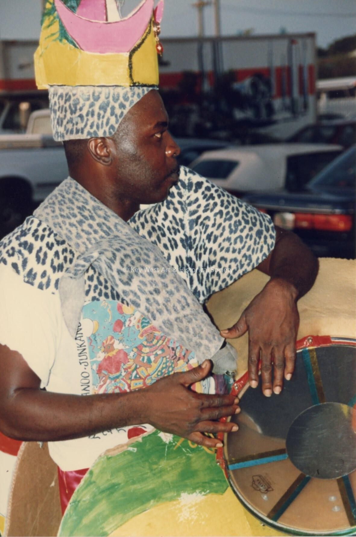 Unknown man dressed up holding some sort of instrument.Entry/Object ID