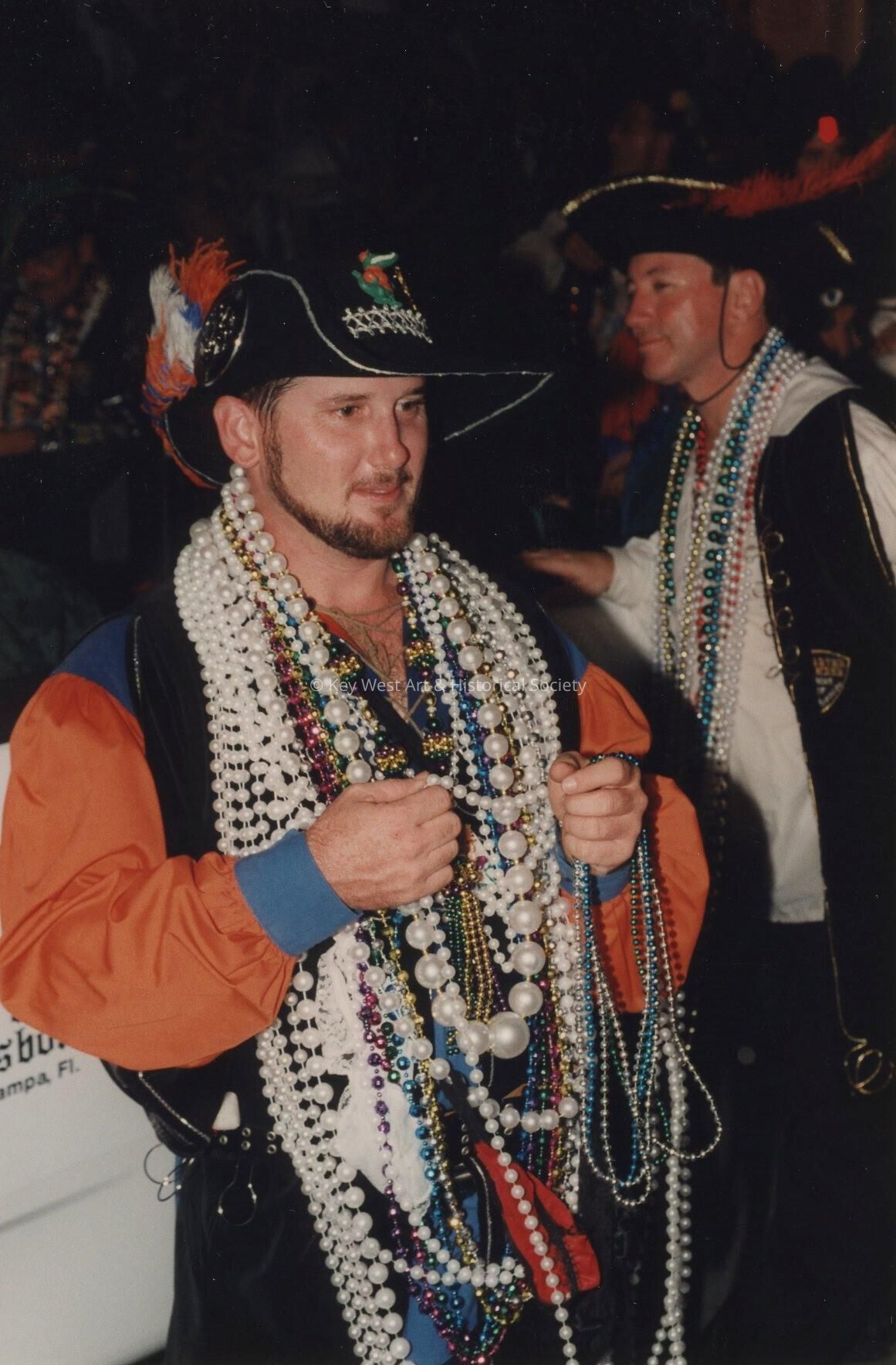 Unknown man dressed up with lots of beads around his neck.Collection
