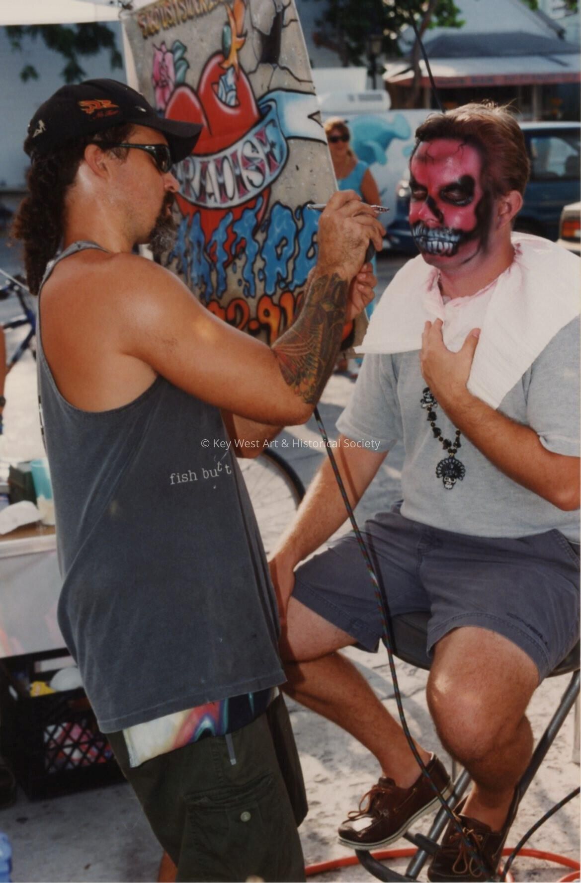 Unknown man getting his face painted.