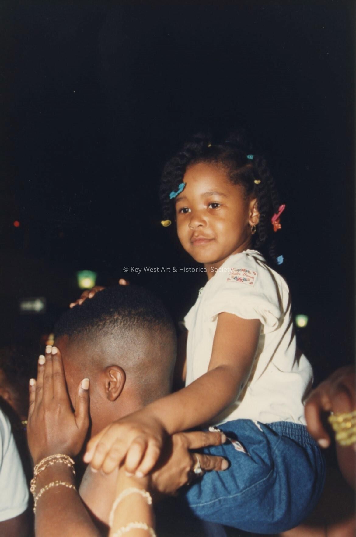 Unknown man holding an unknown child on his shoulders.Entry/Object ID