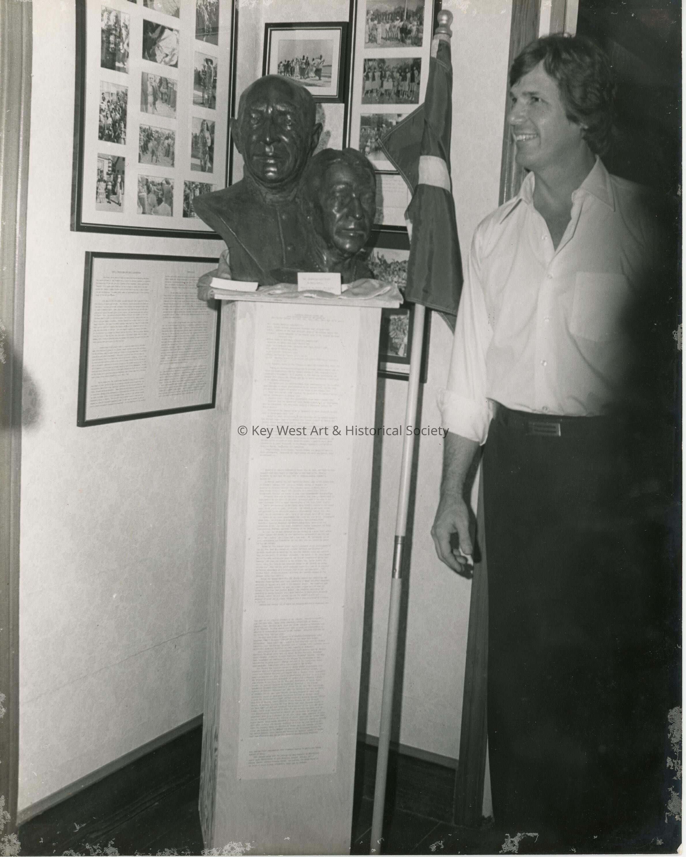 Unknown man standing next to a sculpture