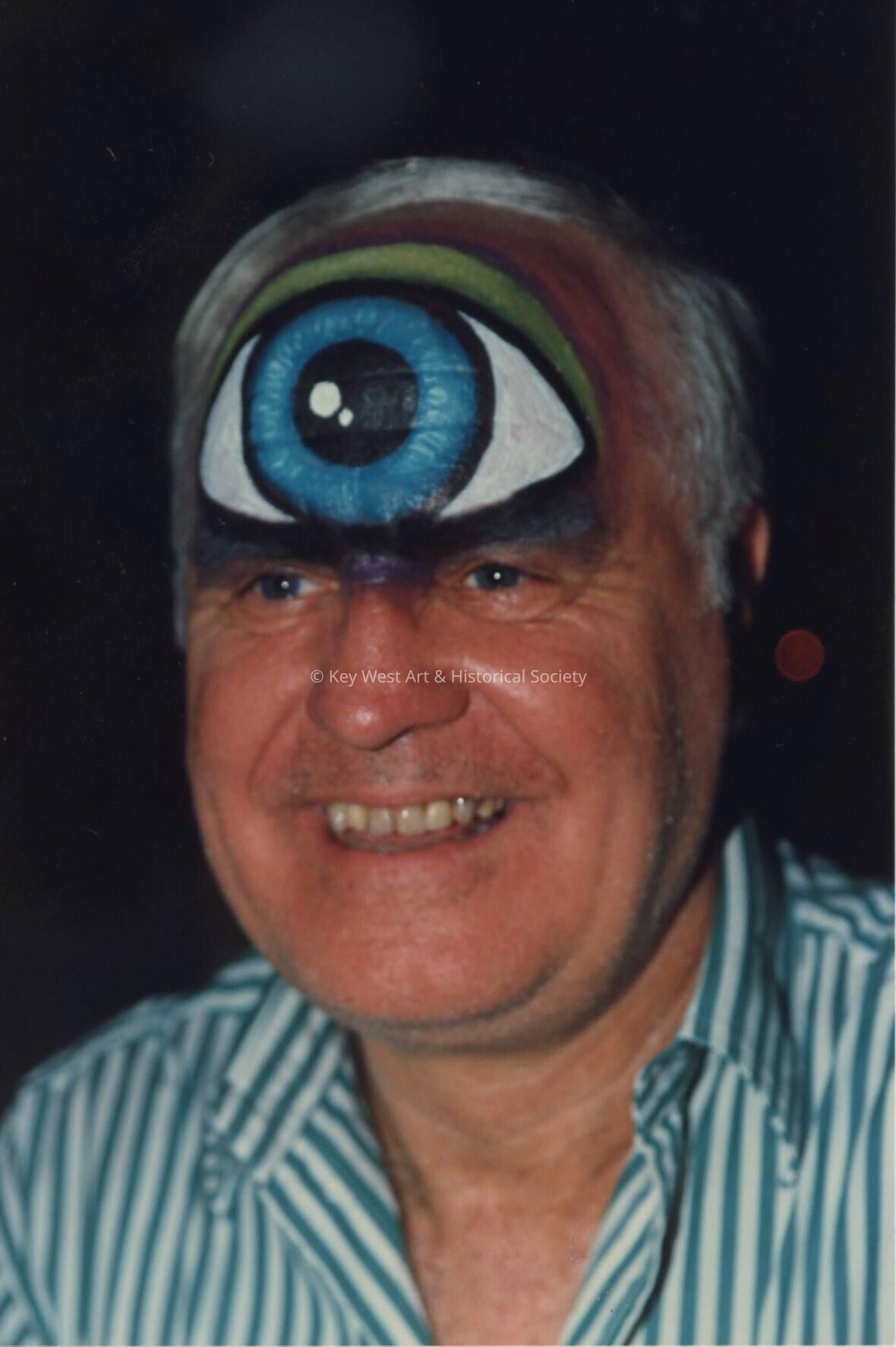 Unknown man with a painted eyeball on his forehead at the Coronation Ball.Entry/Object ID