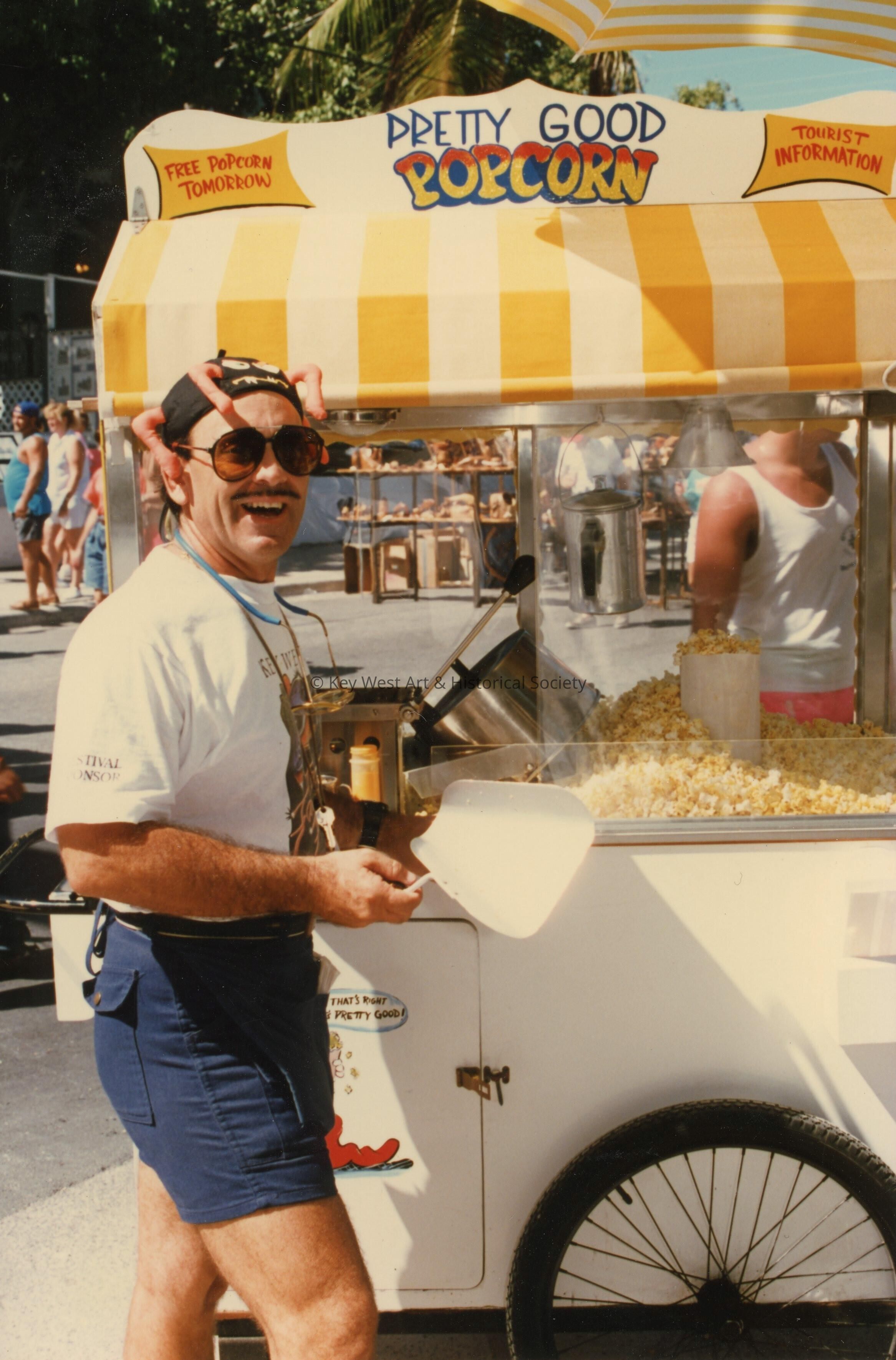 Unknown man working a popcorn machine.