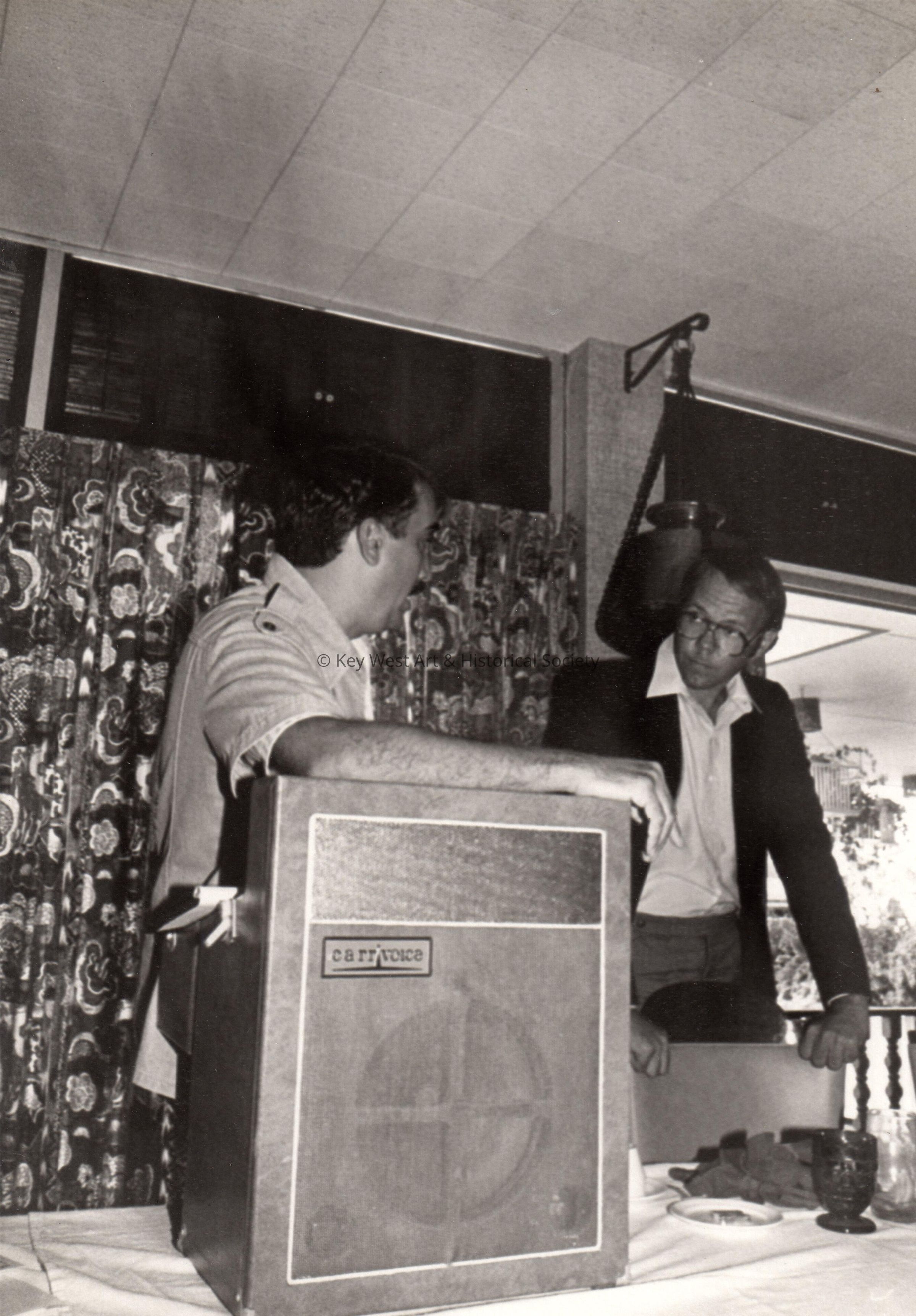 Unknown men at a podium.