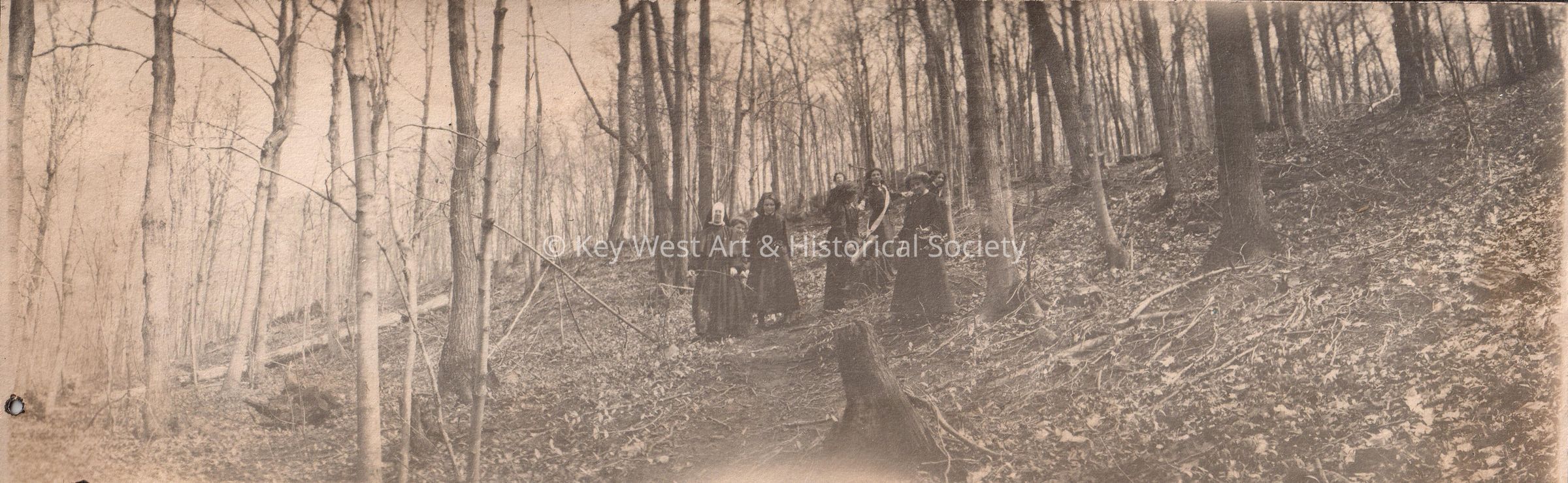 Unknown nun and women in forest.