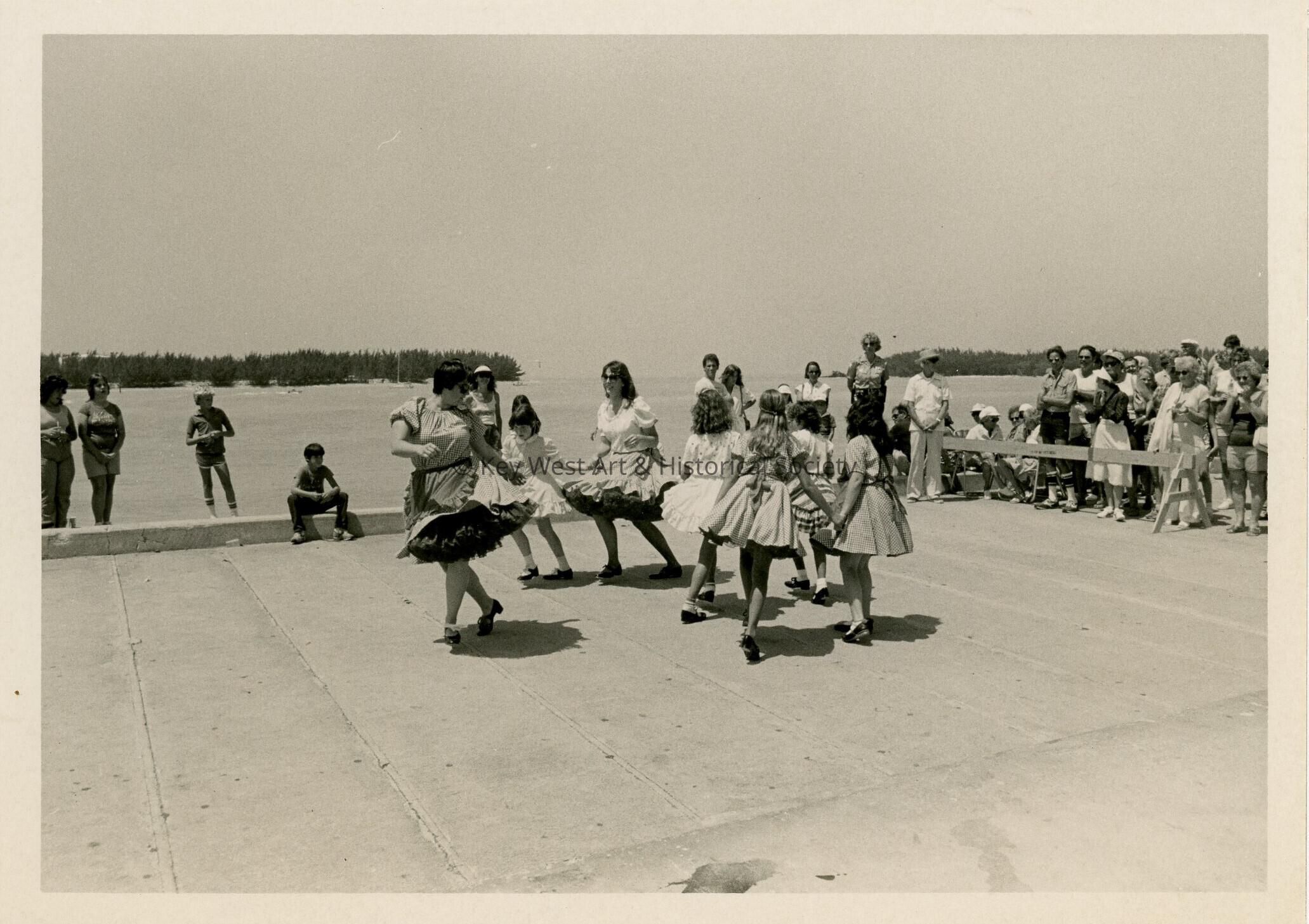 Unknown people dancing during a ceremony near the water.Collection