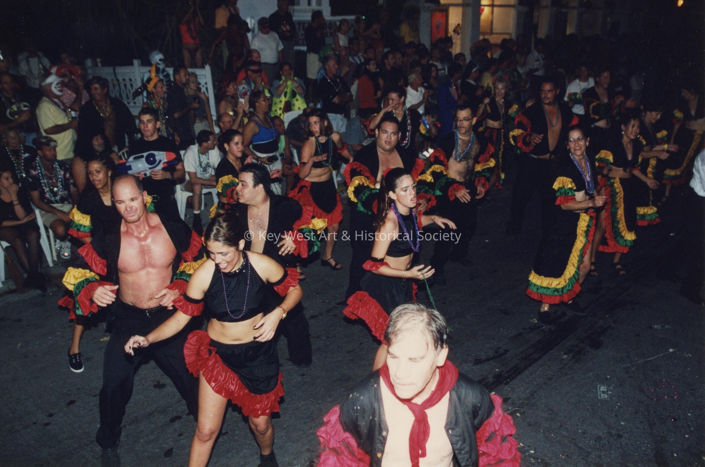 Unknown people dancing in the street in the parade.Entry/Object ID