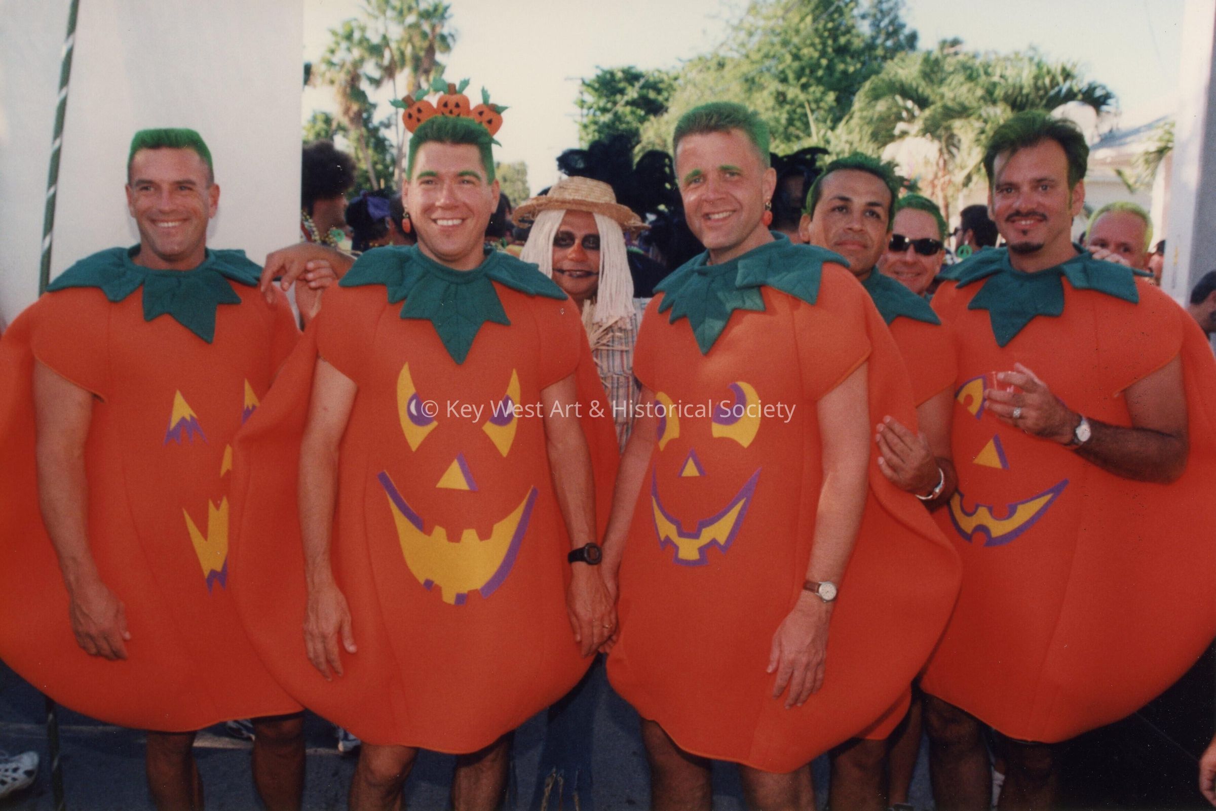 Unknown people dressed up as pumpkins.