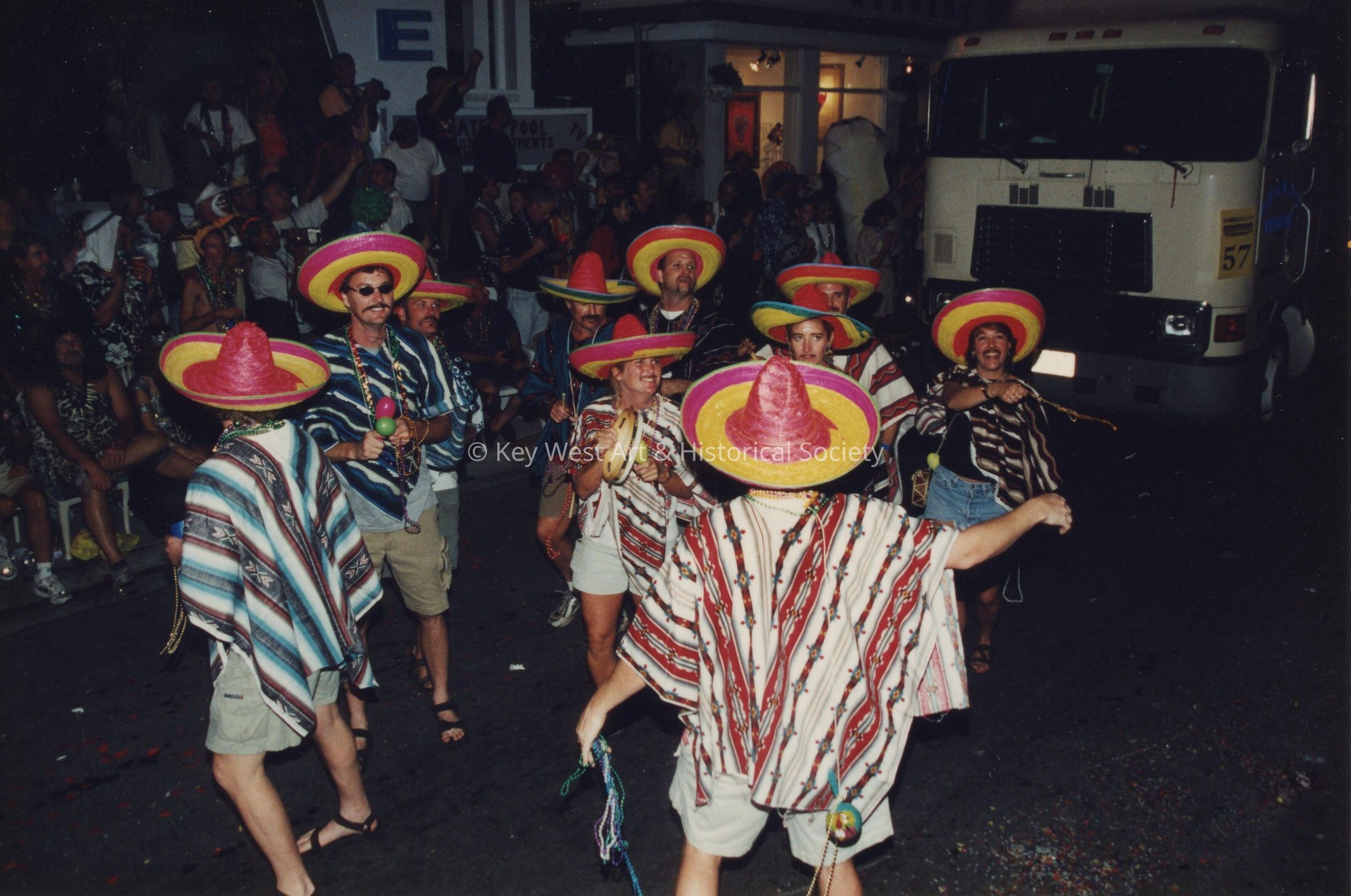 Unknown people dressed up dancing on the street for the parade.Entry/Object ID