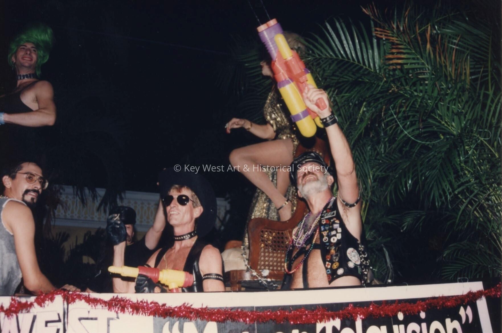 Unknown people dressed up on a float.