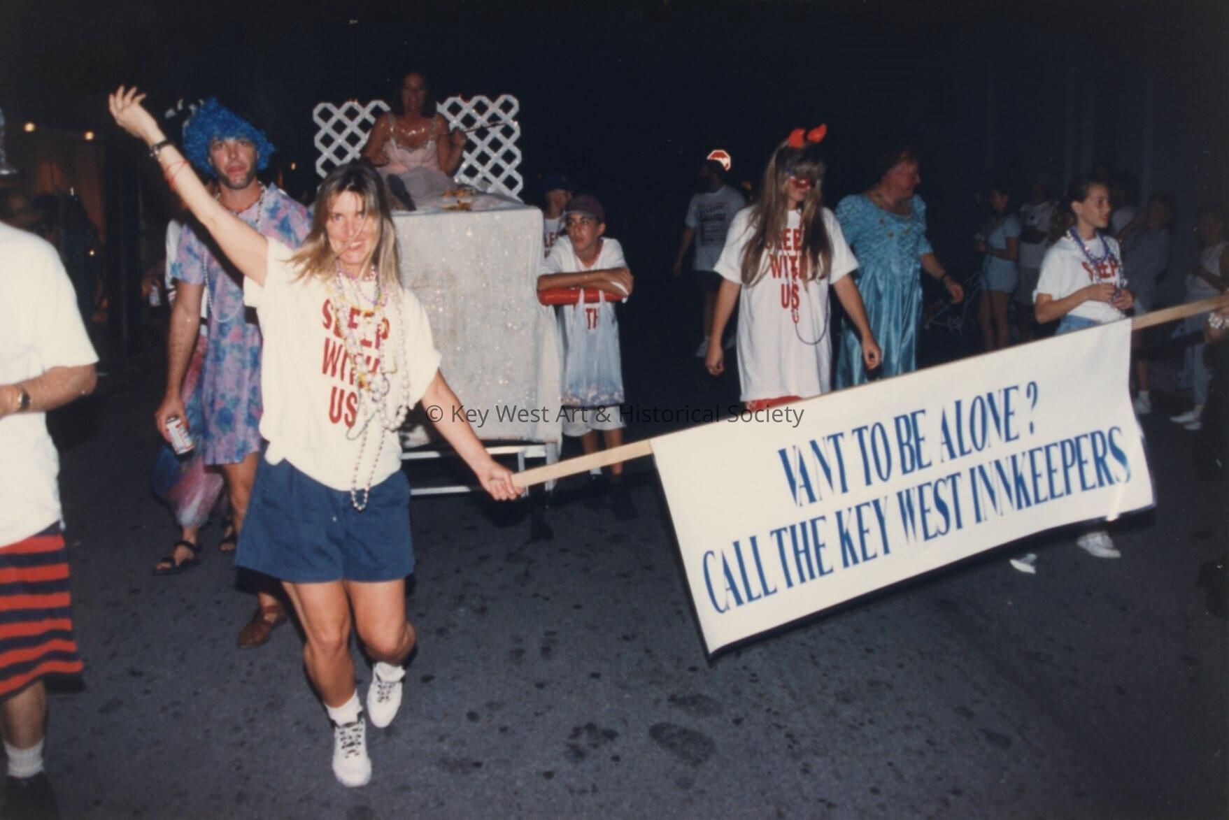 Unknown people dressed up walking down the street for the parade.Entry/Object ID