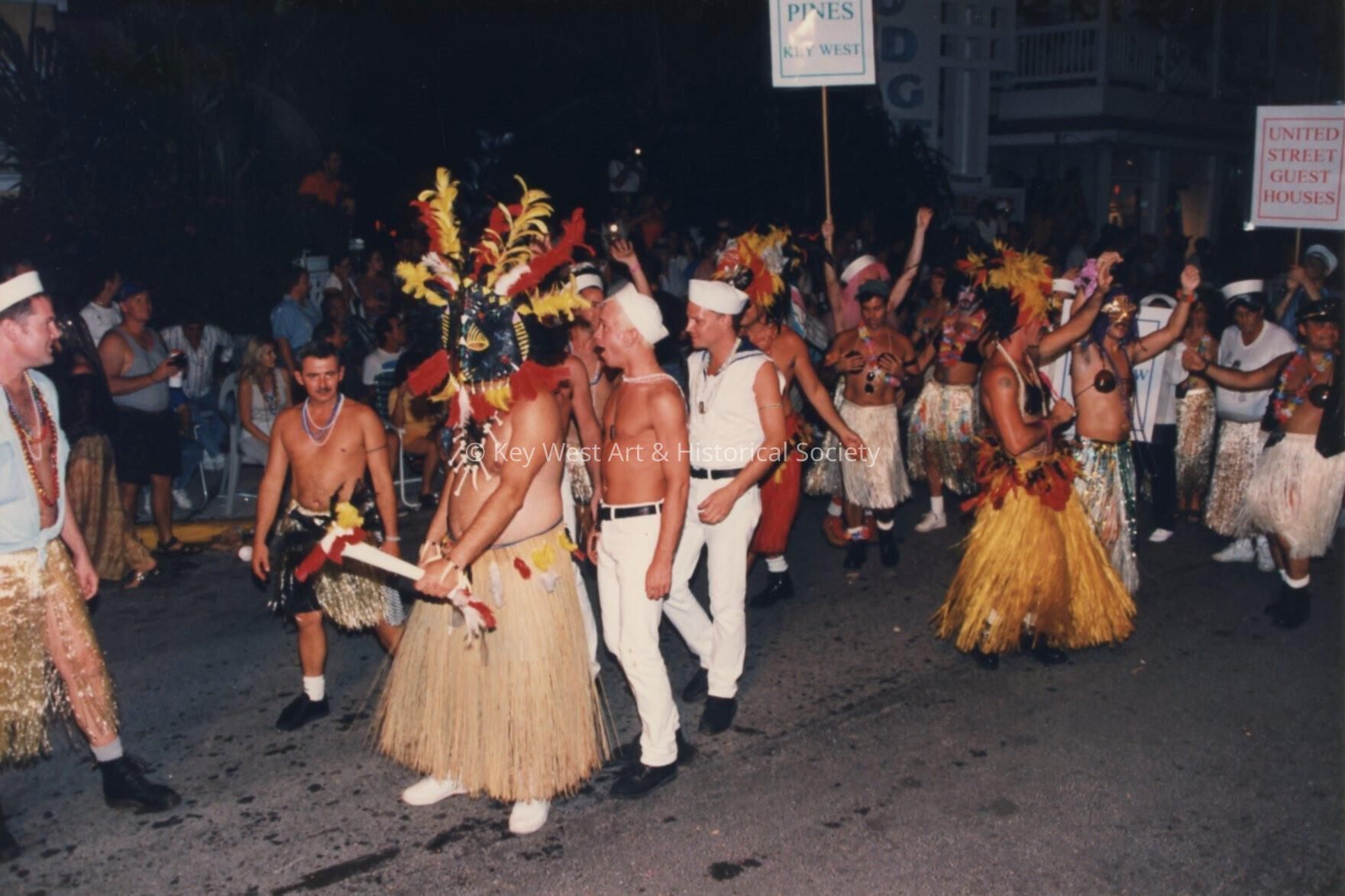 Unknown people dressed up walking in the parade.Entry/Object ID