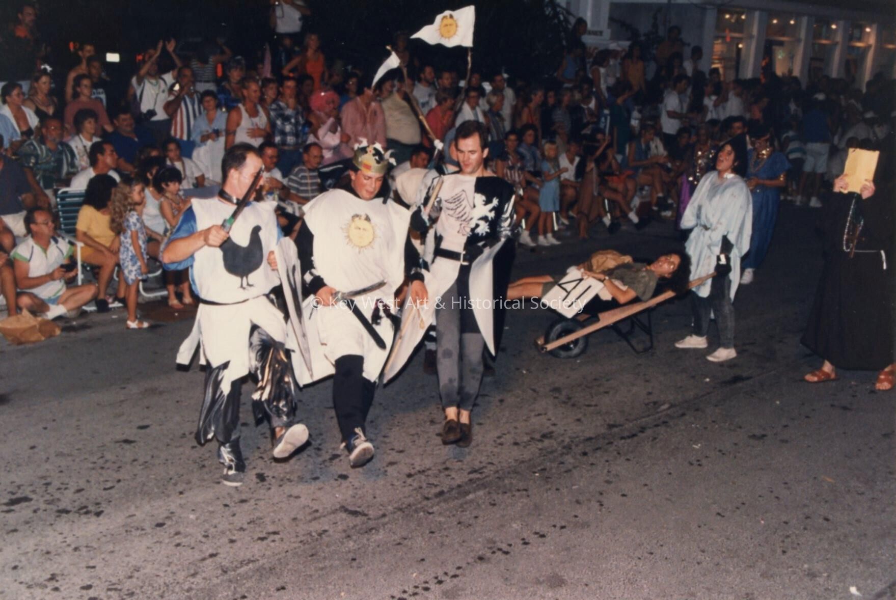 Unknown people dressed up walking in the street for the parade.Entry/Object ID