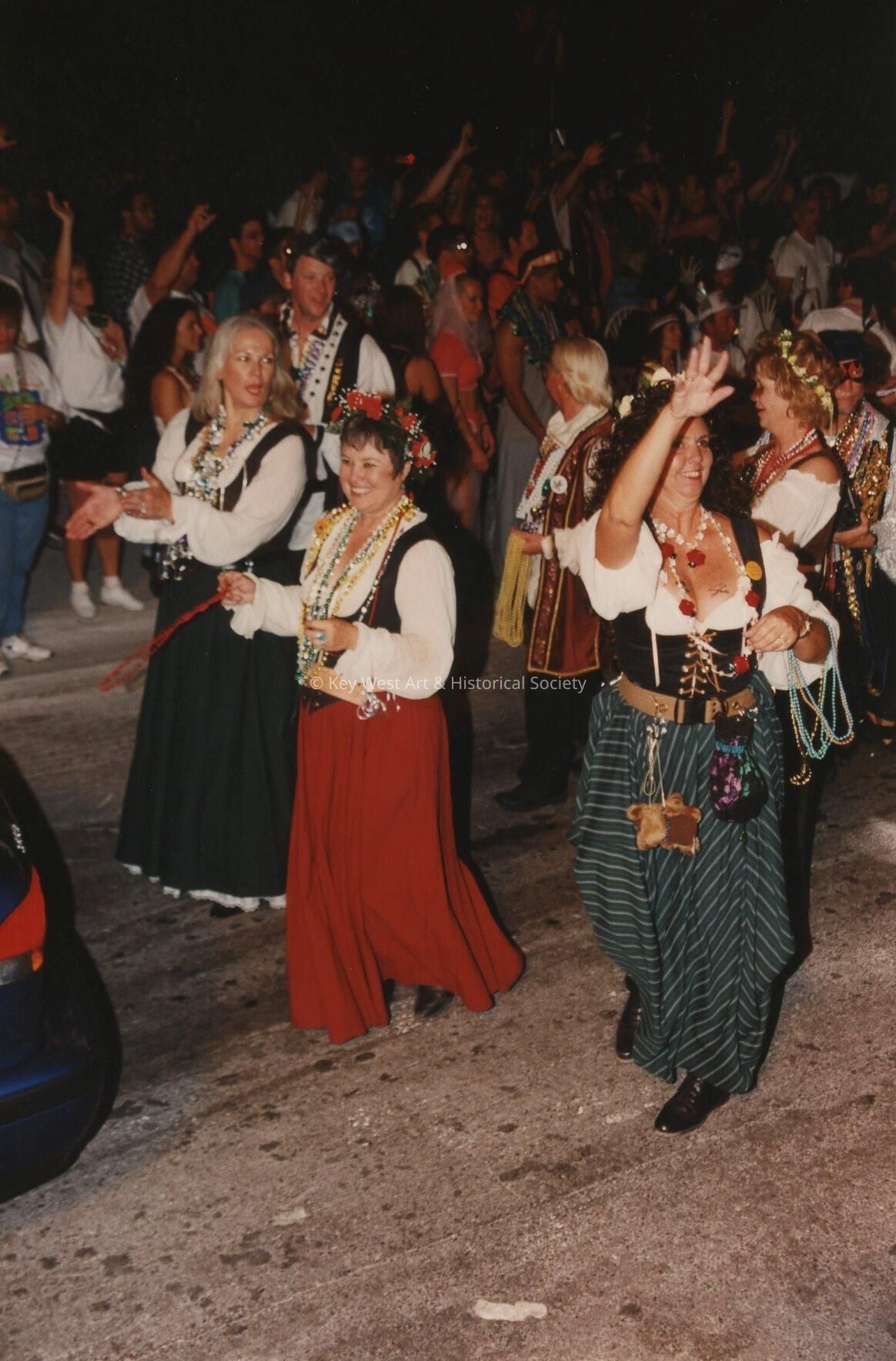 Unknown people dressed up walking in the street for the parade.Entry/Object ID