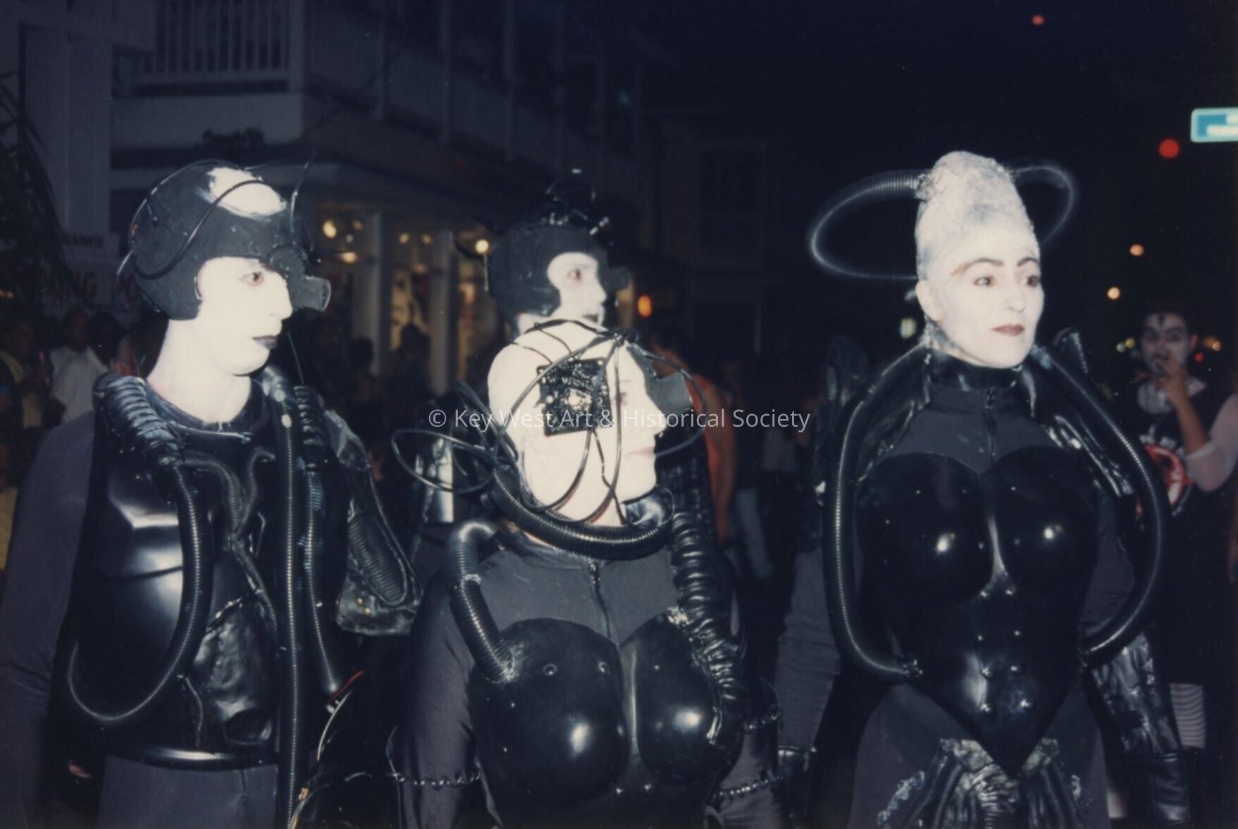 Unknown people dressed up walking in the street for the parade.Entry/Object ID