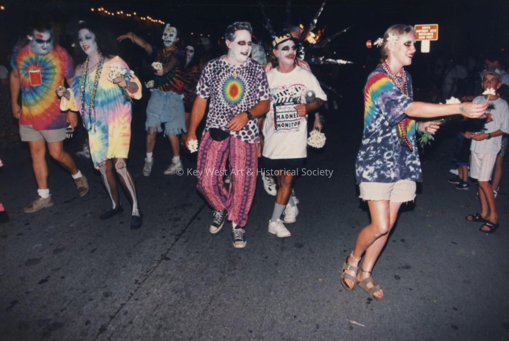 Unknown people dressed up walking in the street for the parade.Entry/Object ID