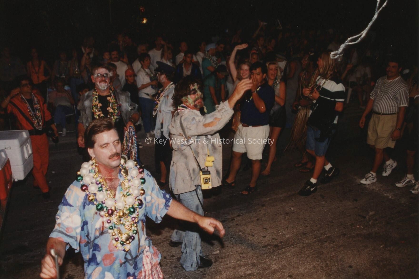 Unknown people dressed up walking in the street for the parade.Entry/Object ID