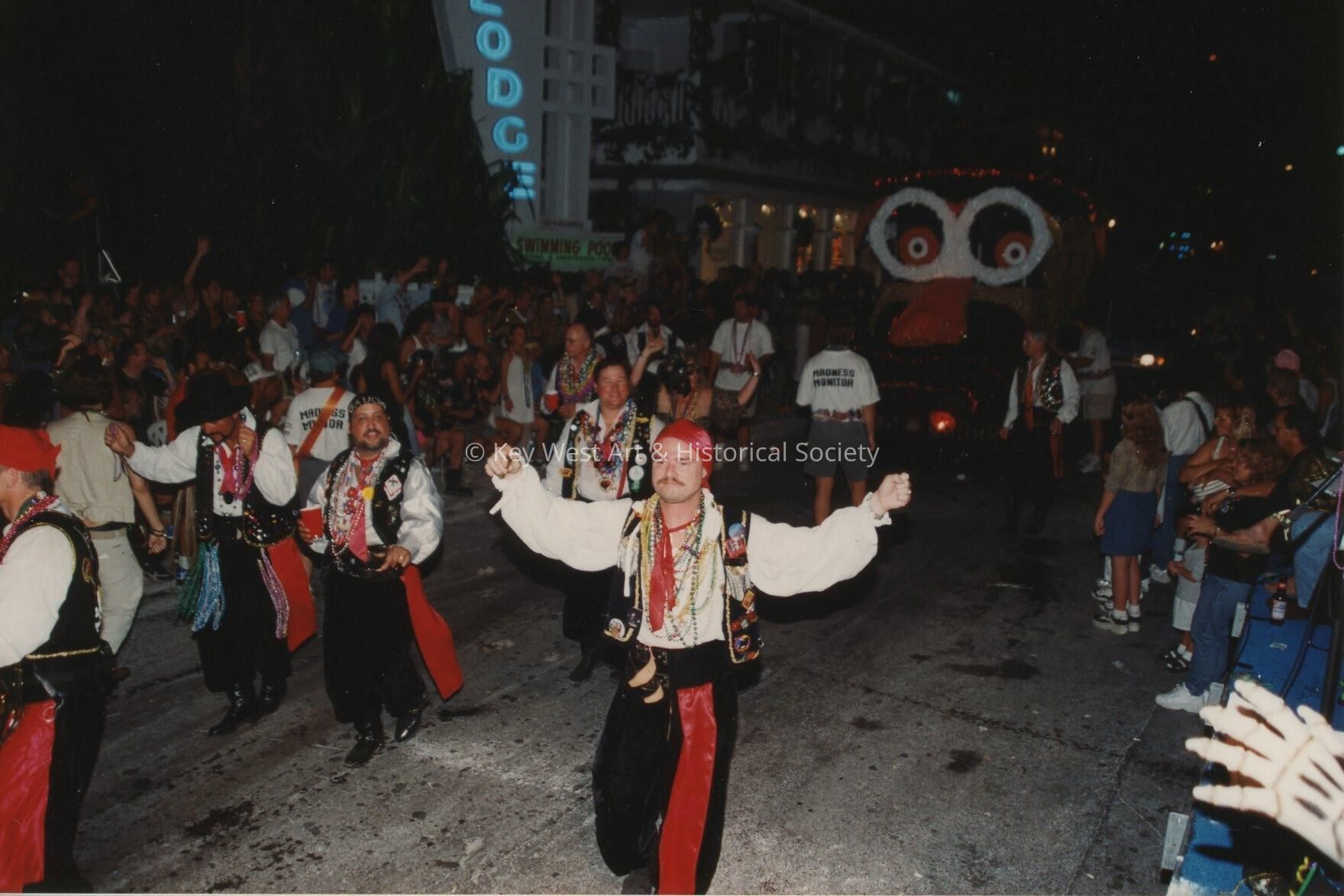 Unknown people dressed up walking in the street for the parade.Entry/Object ID