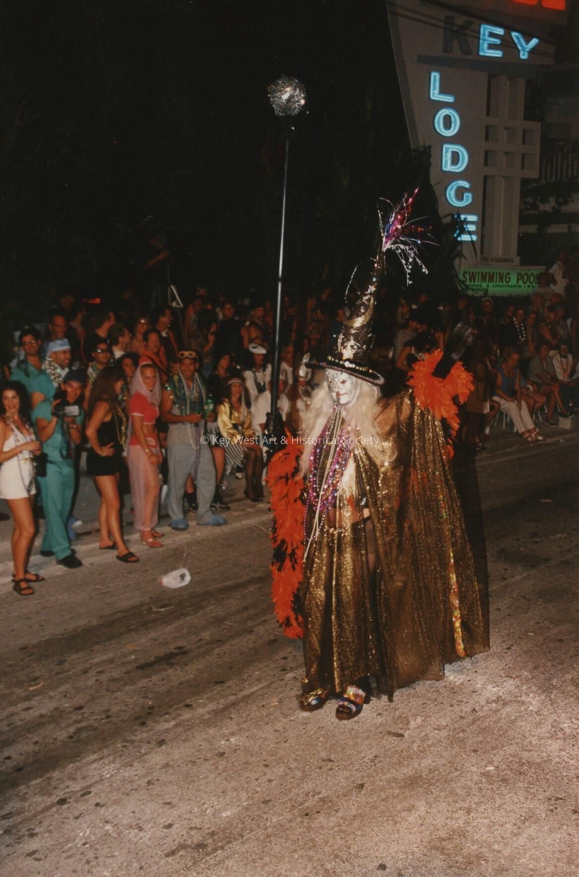 Unknown people dressed up walking in the street for the parade.Entry/Object ID