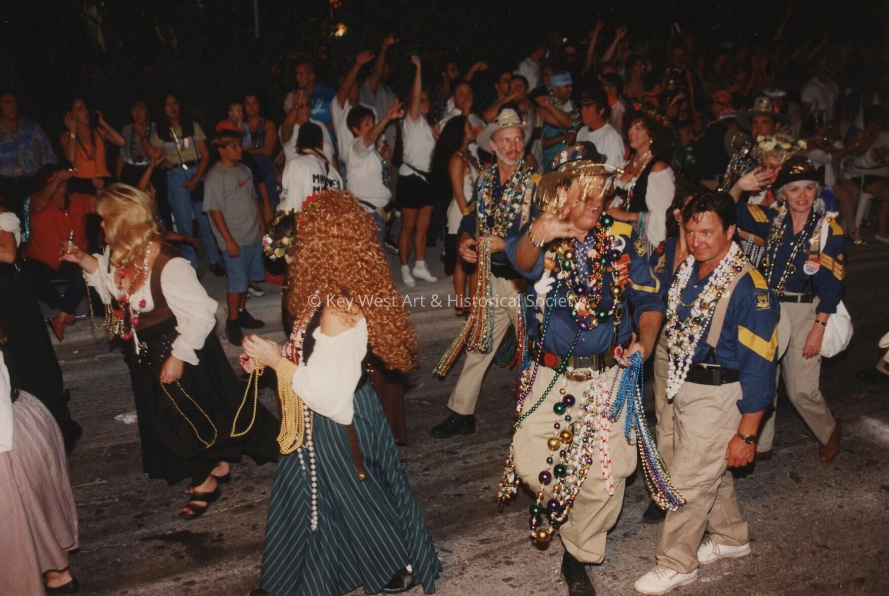 Unknown people dressed up walking in the street for the parade.Entry/Object ID