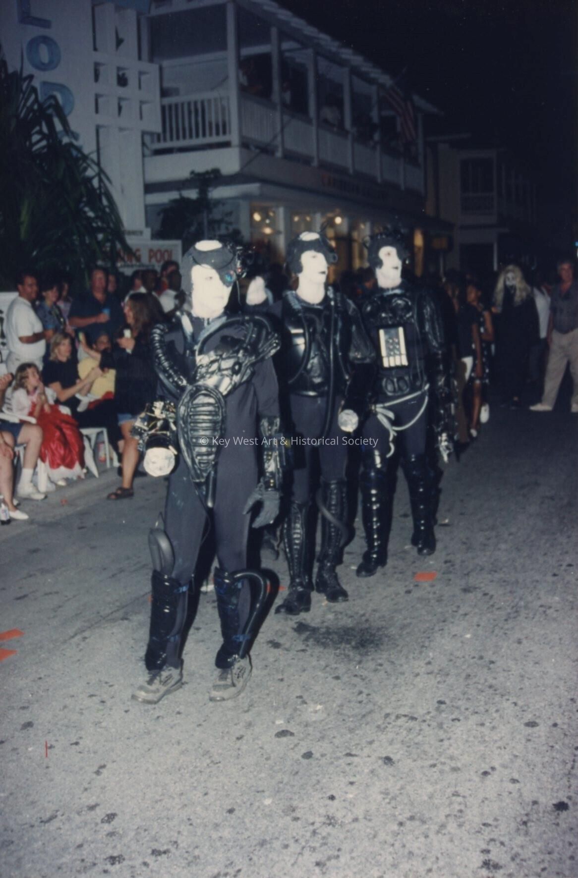 Unknown people dressed up walking in the street for the parade.Entry/Object ID