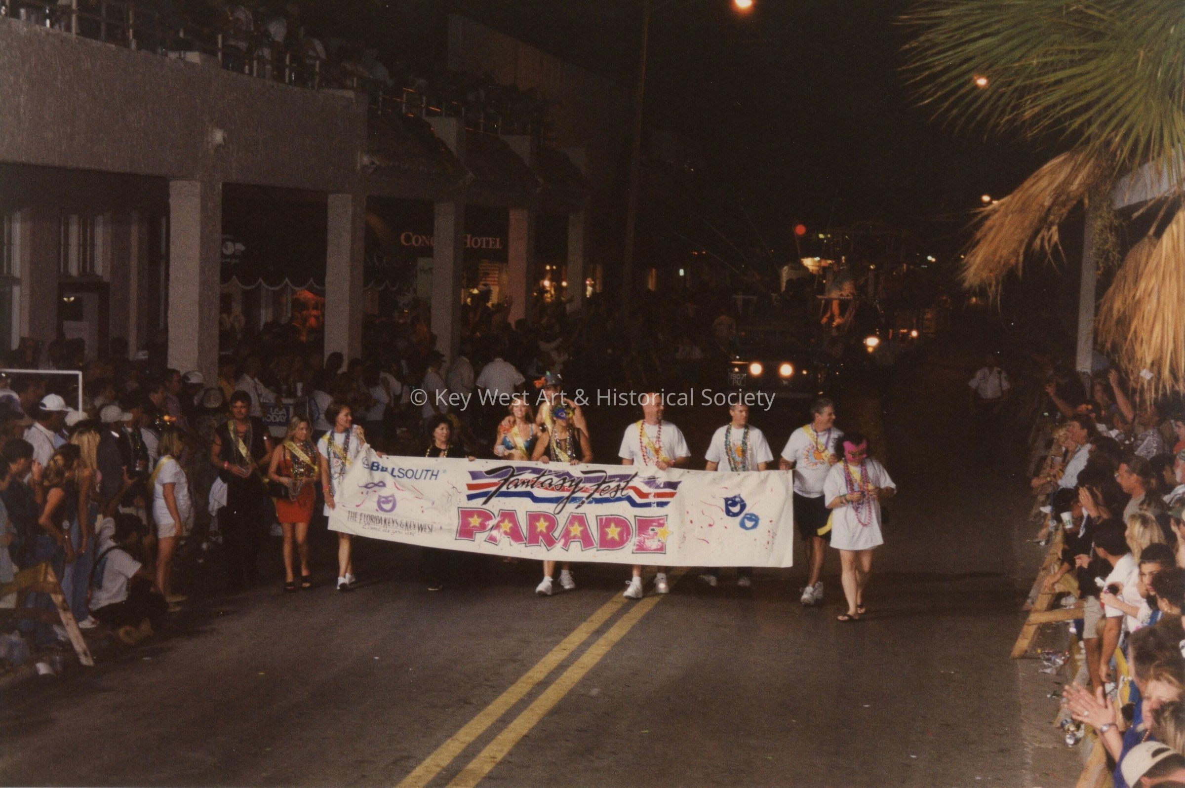 Unknown people holding the fantasy fest banner.Entry/Object ID
