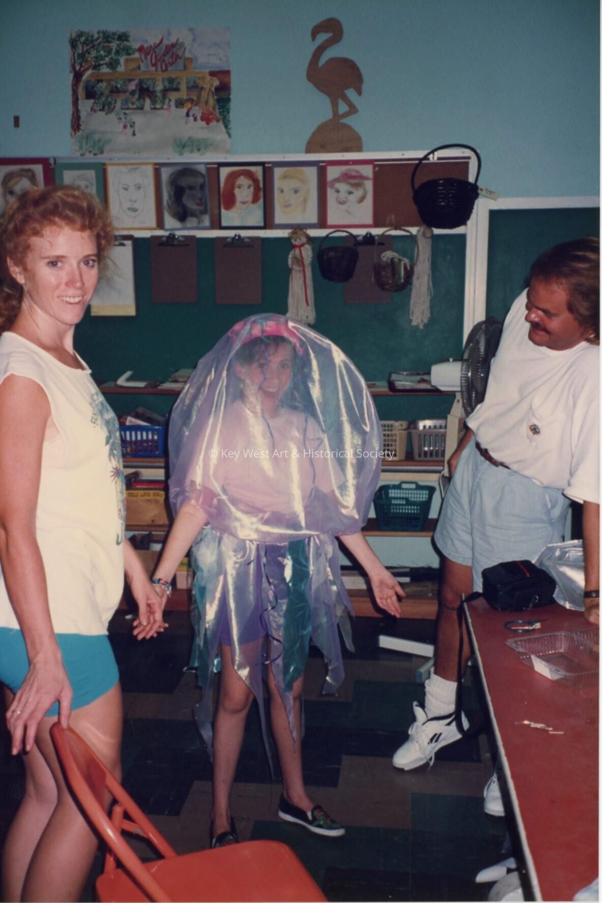 Unknown people in a classroom, a young girl is dressed up.Entry/Object ID