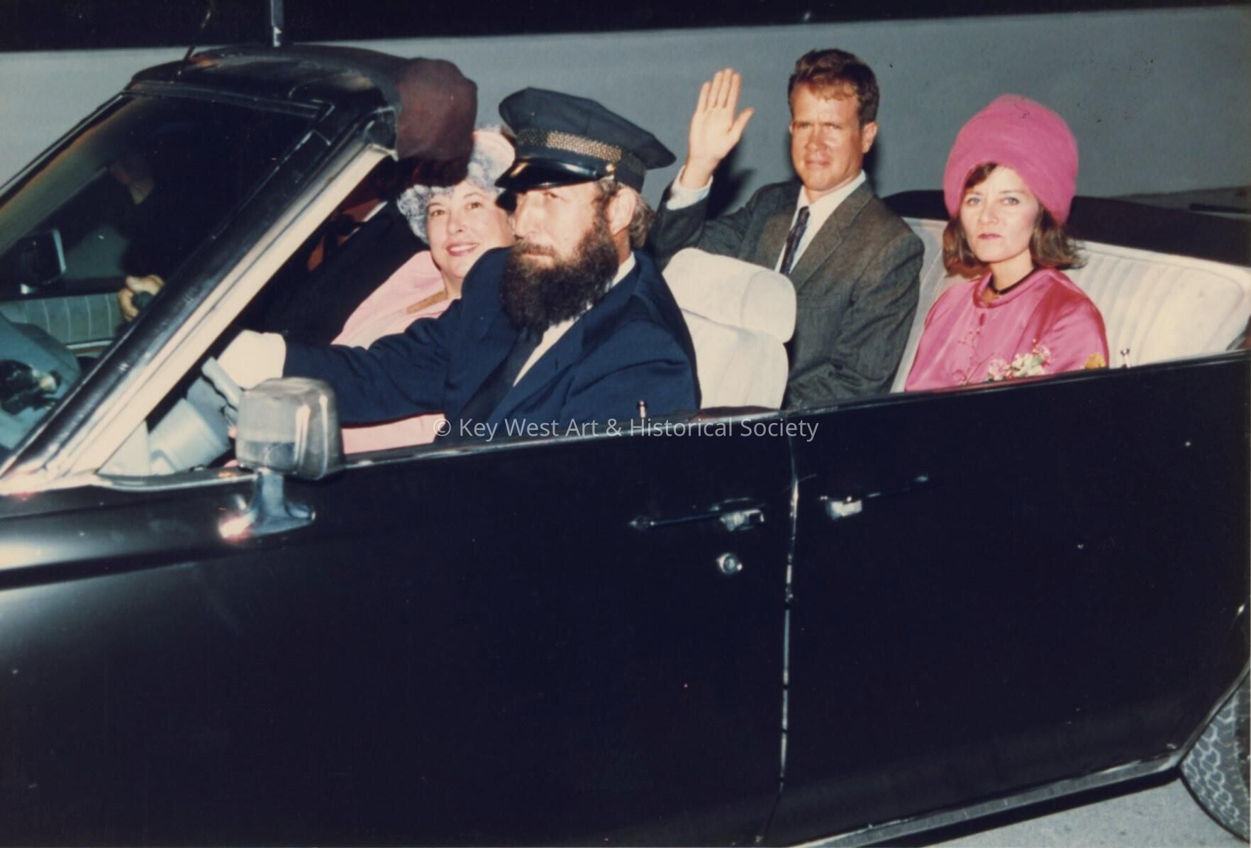 Unknown people in a convertible.