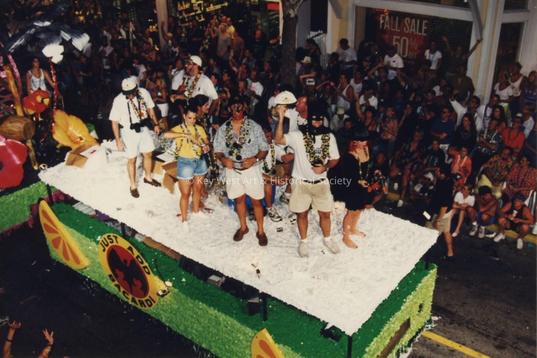 Unknown people on a float in the parade.