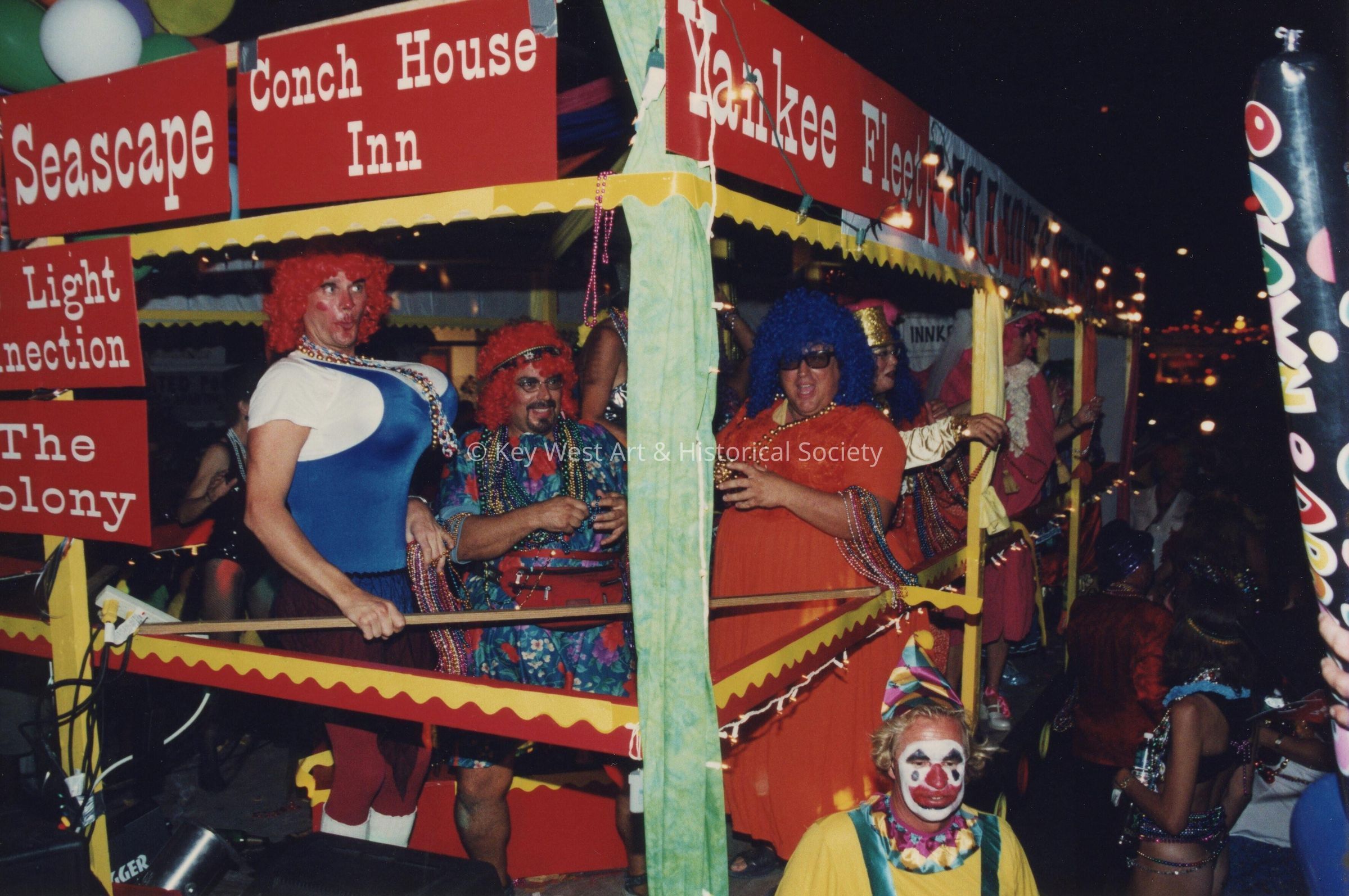 Unknown people on a float in the parade.