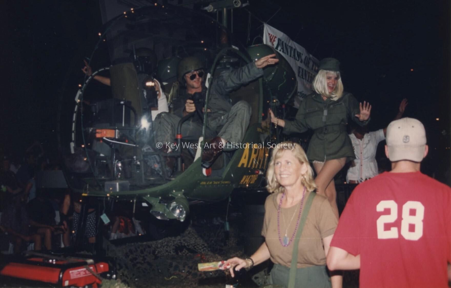 Unknown people on a float that is an Army helicopter.Collection